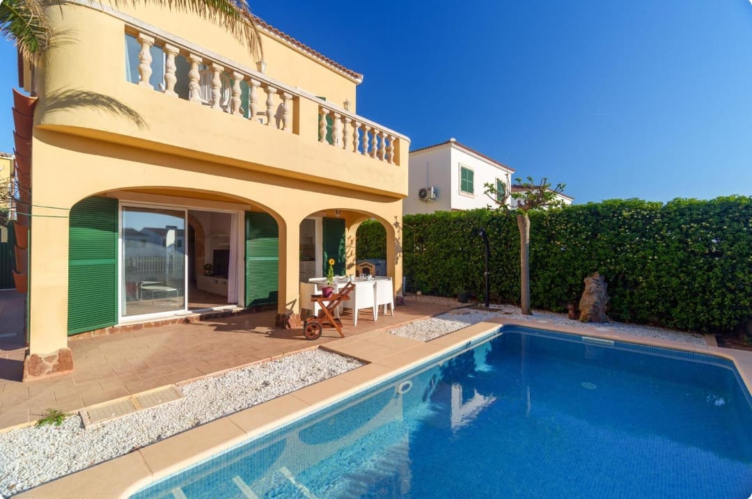 Villa dúplex privada de 105m² distribuidos en 2 plantas, con piscina privada. La propiedad está ubicada en la urbanización de Cala Blanca, en el término municipal de Ciutadella de Menorca, a unos 150 metros de la playa más cercana. Es una vivienda ideal para familias con niños que deseen disfrutar de unas placenteras vacaciones en la isla y a su vez pasar una agradable y relajante estancia en nuestra villa.