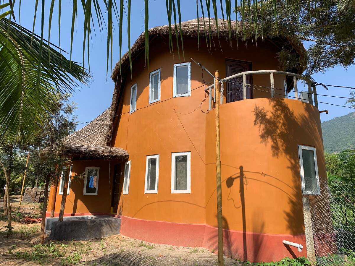 Disfruta de los sonidos de la naturaleza cuando te hospedes en este lugar único. Estamos ubicados en los ghats orientales muy bien conectados por ferrocarril de carretera y aire . La estación de tren está a 2 km y el aeropuerto está a 2:30 horas . Somos una granja activa con un estilo de vida y construcción sostenibles.