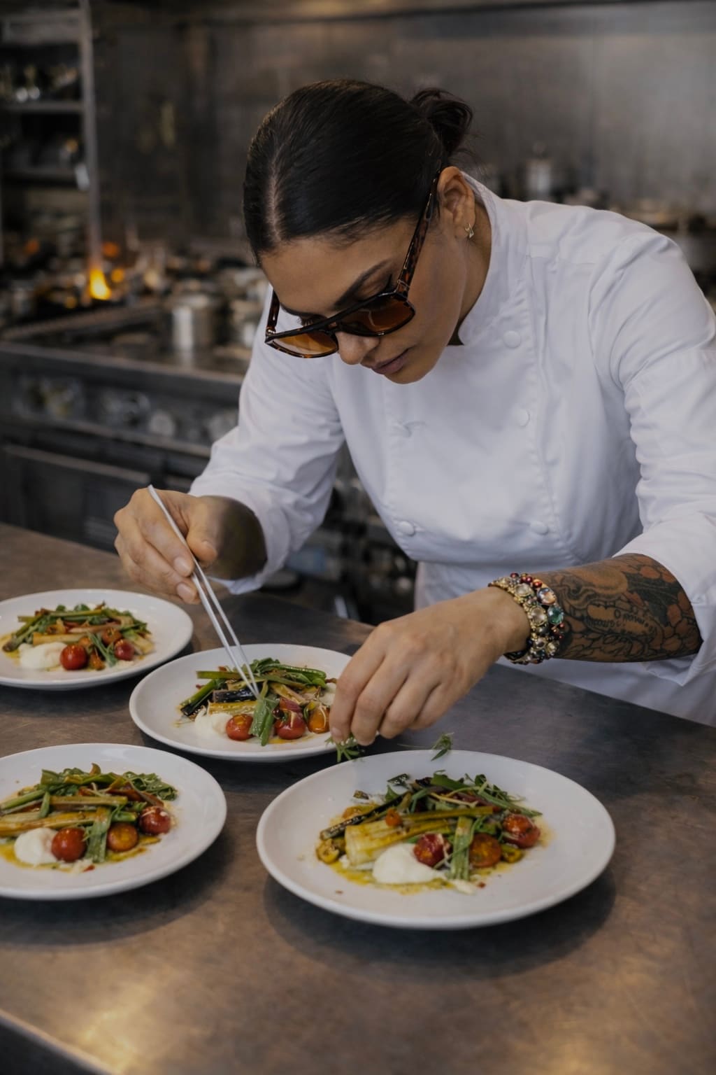 Me gusta cocinar según las estaciones, el clima, las emociones. Gracias a mis diversas experiencias, mi cocina es una cocina del mundo, pero me encanta la cocina mediterránea, de los recuerdos, que huele a casa.