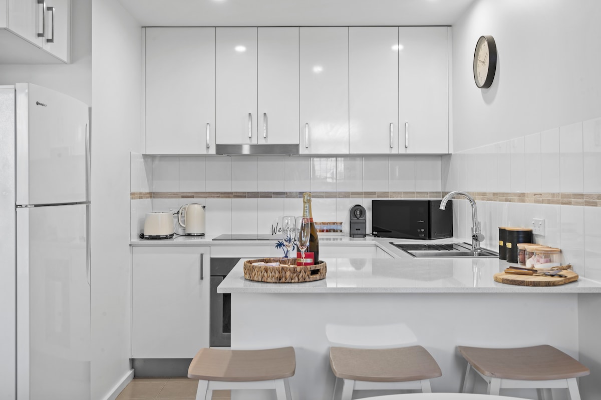 No dudes en ponerte en contacto con nosotros si quieres reservar una estancia larga. Es posible que pueda alojarte. El lujo te espera en nuestro hermoso apartamento independiente de un dormitorio. Se encuentra a una manzana de Queens Wharf & The Foreshore y en el límite del centro comercial Hunter Street Mall. Lleno de hermosas cafeterías, calles arboladas y pequeñas boutiques y galerías peculiares. Se puede acceder fácilmente a pie o en nuestro nuevo tranvía. A solo 5 minutos a pie de la playa de Newcastle.