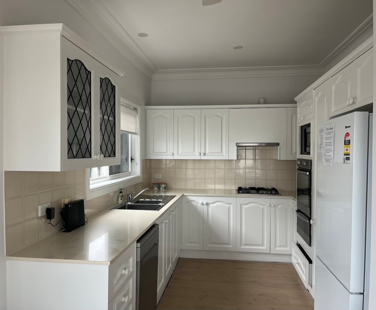 Cuando buscas mucho más que un dormitorio. Te doy la bienvenida a mi suite independiente luminosa, brillante y alegre a una calle de la playa. Una entrada independiente que contiene un dormitorio grande, sala de estar/salón independiente con escritorio/biblioteca, nevera, baño, aseo y patio privado con desayuno gourmet gratuito, ¡una forma perfecta de empezar el día! Te encantará mi casa por el barrio, la cómoda cama y la luz. Perfecto para parejas, personas que viajan solas y viajeros de negocios.