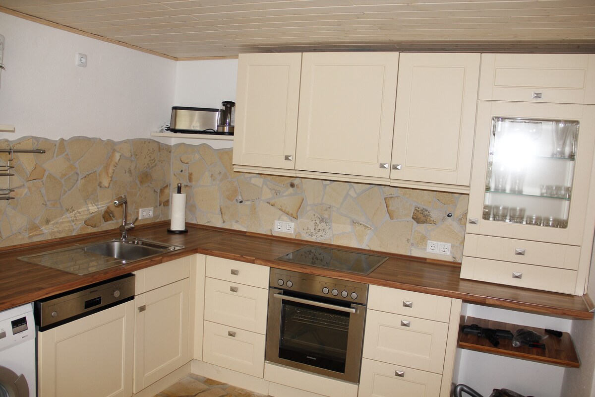 Bienvenido a nuestro espacioso apartamento en la planta baja en el campo con balcón y terraza. Tiene su propia entrada, sala de estar, cocina/comedor y un dormitorio. Es un apartamento para no fumadores y no se admiten mascotas. El departamento se encuentra en un distrito de Lichtenau, que está a 2 km de distancia. Hay tiendas, restaurantes, un campo de golf y una piscina al aire libre.