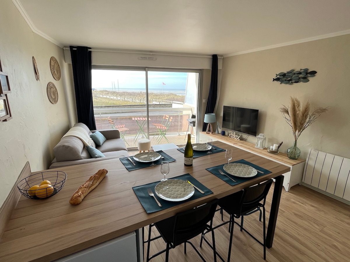 Déjeunez, lisez, contemplez la mer 🌊 depuis le séjour de cet appartement cosy avec balcon sur la Côte d'Opale avec arrivée autonome. ✅ Les points forts 🌅Vue mer 180° 🪟 Grande baie vitrée et balcon 6 m² 🚗Garage privatif (1 place) 📶Wifi +TV connecté ✨Appartement rénové de 54 m², cosy et lumineux, à la déco épurée. 🏖️Tout à pied : plage, commerces, restaurants, casino… et balade pour observer les phoques (selon les marées). 👶Bébé bienvenu : lit parapluie + chaise haute sur place