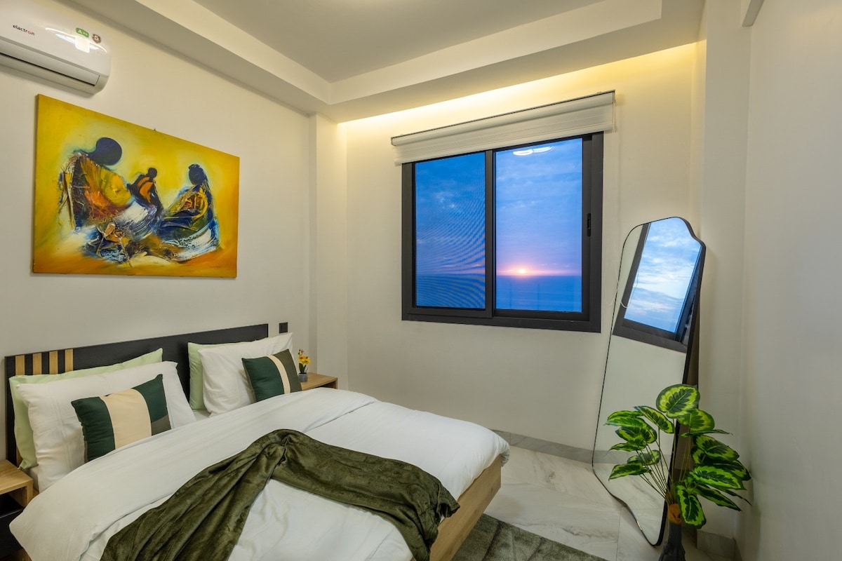 A stylish oasis in Dakar, Senegal! Walking distance from the beach, Mosque of Divinity, and the Monument of African Renaissance, our sun-soaked apartment offers a perfect blend of comfort and convenience. The open-concept space features abundant natural light, a dedicated workspace, and access to a well-equipped on-site gym and pool. Experience tranquility with modern amenities, ensuring a serene stay in the heart of Dakar. Embrace the vibrant culture while also enjoying a luxurious retreat!