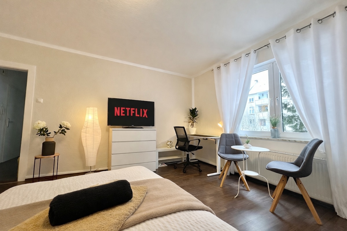 Si te alojas en esta céntrica propiedad, tendrás todos los puntos de interés importantes cerca. Está a solo 1,8 km de la estación principal del tren, la clínica y el Messe Essen están a poca distancia a pie (unos 15 minutos) y hay muchas tiendas, restaurantes y cafeterías justo al lado de la propiedad. Damos gran importancia a los servicios cómodos, para que puedas sentirte completamente como en casa con nosotros. Netflix, Amazon prime, cafetera y muchas otras cosas para grandes y pequeñas :)