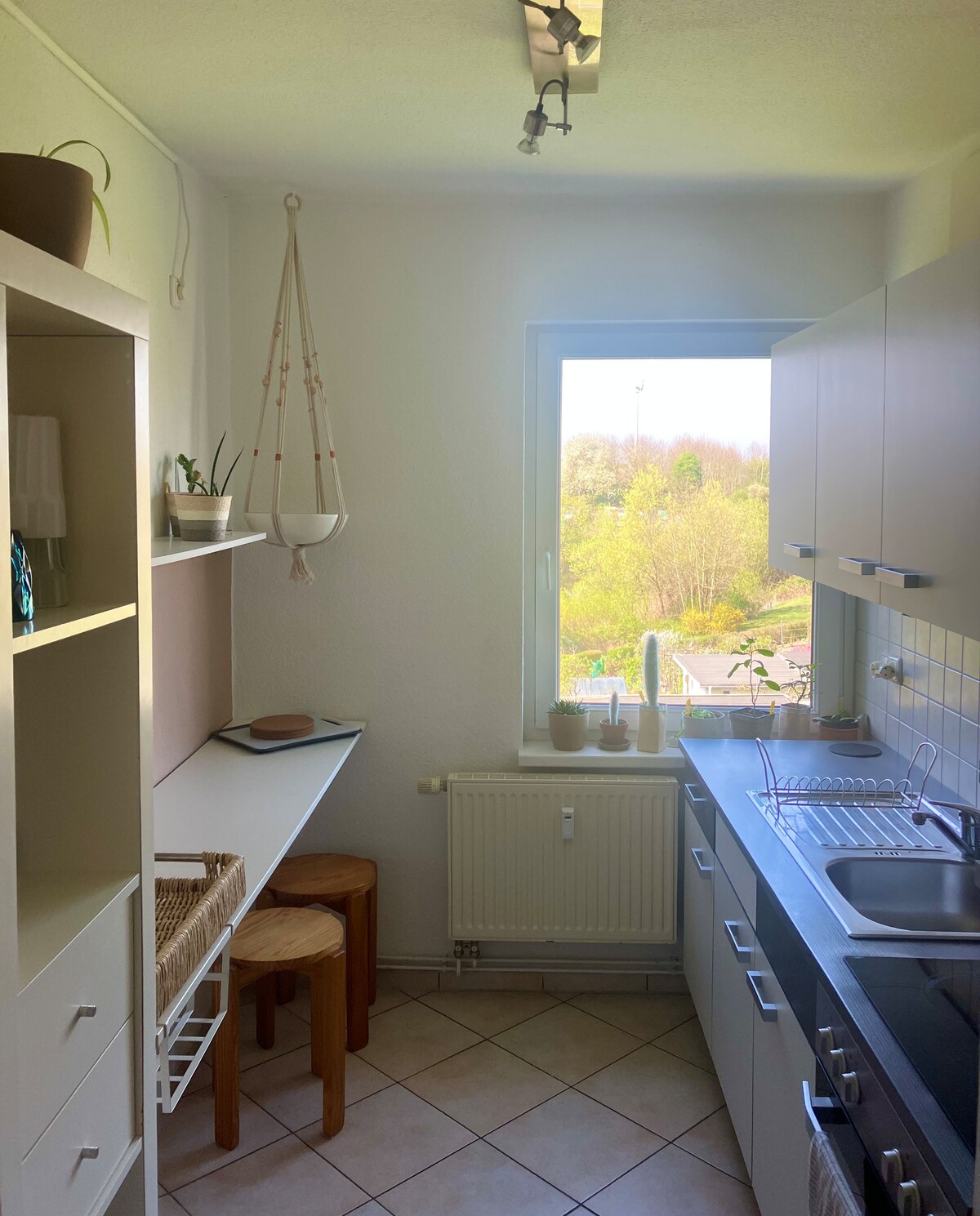 Nuestro pequeño yexcelente departamento de vacaciones está ubicado en el piso superior de nuestro edificio residencial. Se puede llegar al departamento de vacaciones a través de una entrada independiente. Como se ve en las fotos, hay una habitación grande de la que se ha separado una pequeña cocina. La cocina tiene vitrocerámica, hervidor de agua y cafetera de filtro, así como platos habituales. En la sala de estar/dormitorio hay una bonita cama (2x2), así como algunos armarios pequeños. También hay un hermoso cuarto de ducha.