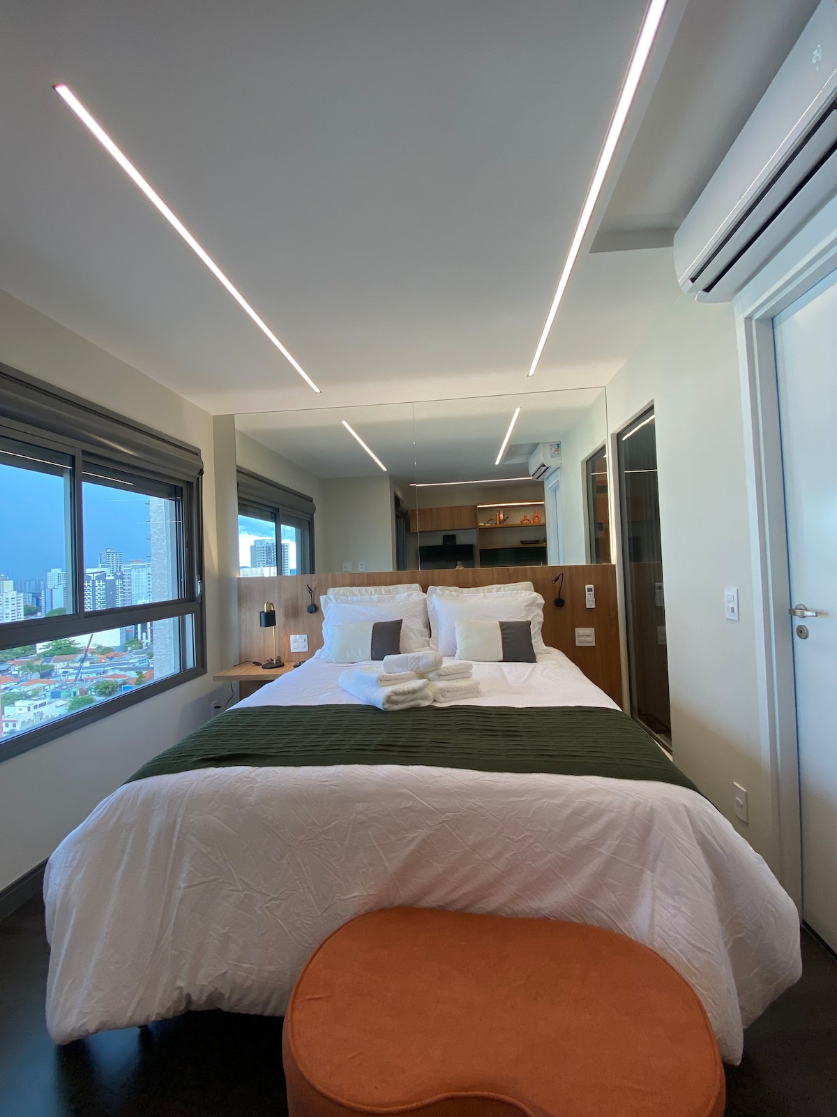 Estudio de lujo cuidadosamente diseñado para ofrecer comodidad, estilo y practicidad en el corazón de São Paulo. El espacio tiene una hermosa piscina en la azotea con una vista sin obstáculos de São Paulo: diseño moderno, iluminación acogedora, cama cómoda, cocina equipada, aire acondicionado, Wi-Fi rápido y televisor inteligente. Ubicado a pocos pasos de la Avenida Paulista, el metro, restaurantes, cafés y centros comerciales, es ideal para aquellos que buscan una estancia urbana sofisticada, segura y muy bien ubicada.