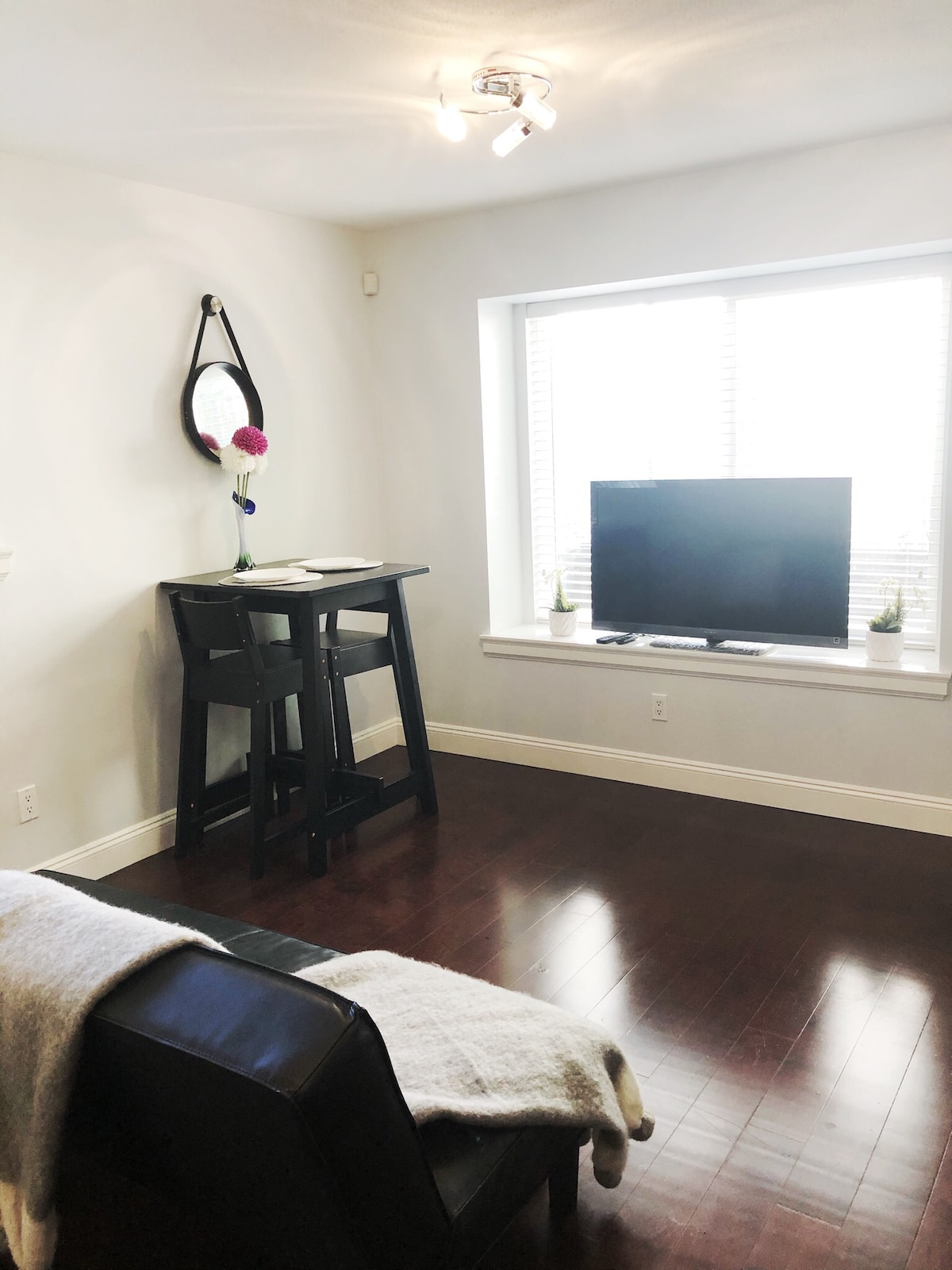 Una suite espaciosa con un hermoso jardín que cuenta con cocina completa, área de comedor y sala de estar de concepto abierto y un baño privado. Duerme bien en una cama tamaño queen con sábanas blancas y almohadas celestiales. Disfrute de wifi gratuito, vea sus películas favoritas de Netflix en un televisor enorme y relájese junto a una cálida chimenea eléctrica. ¡El café de la mañana y las botellas de agua son de cortesía! Ubicado en un barrio tranquilo con estacionamiento gratuito. A 20 minutos en auto desde/hacia la terminal de ferry de Tsawwassen. A 30 minutos en auto desde/hacia el aeropuerto YVR.