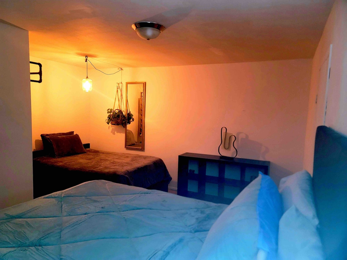 Desconéctate de tus preocupaciones en este espacio tan amplio y sereno. Una recámara con una cama Queen , TV 50” con Disney Channel , un sofacama,microondas etc. Aceptamos un máximo de 3 personas