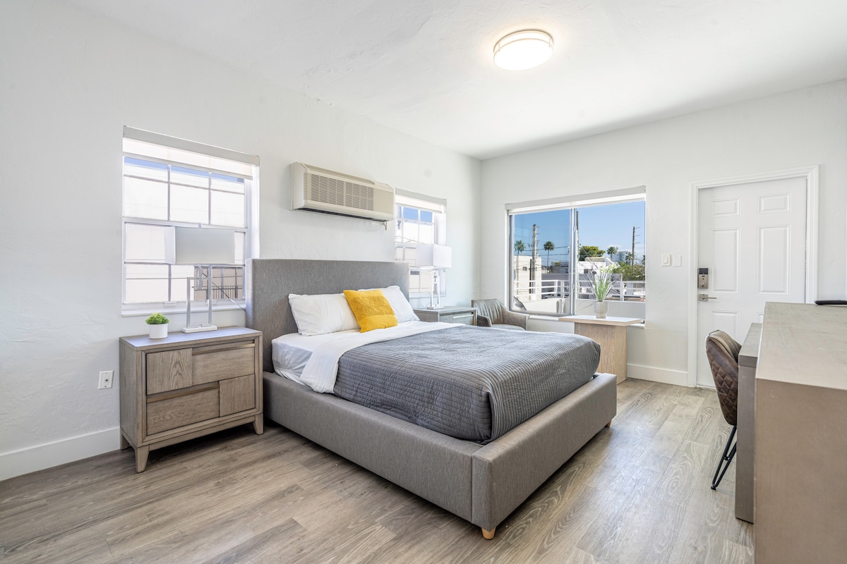 Stay at Hotel Arya in Coconut Grove! This Studio features a kitchenette, private balcony, work desk, cable TV, WiFi, and free self-parking in the hotel garage. Equipped with a king bed and queen sofa bed, this unit comfortably sleeps up to 4 guests. Enjoy hotel amenities like a heated pool, rooftop fitness center, 24-hour front desk, sauna, and more. Within walking distance of many great restaurants, parks, shops, bars, and even a Movie Theater! BOOK NOW for a perfect getaway!
