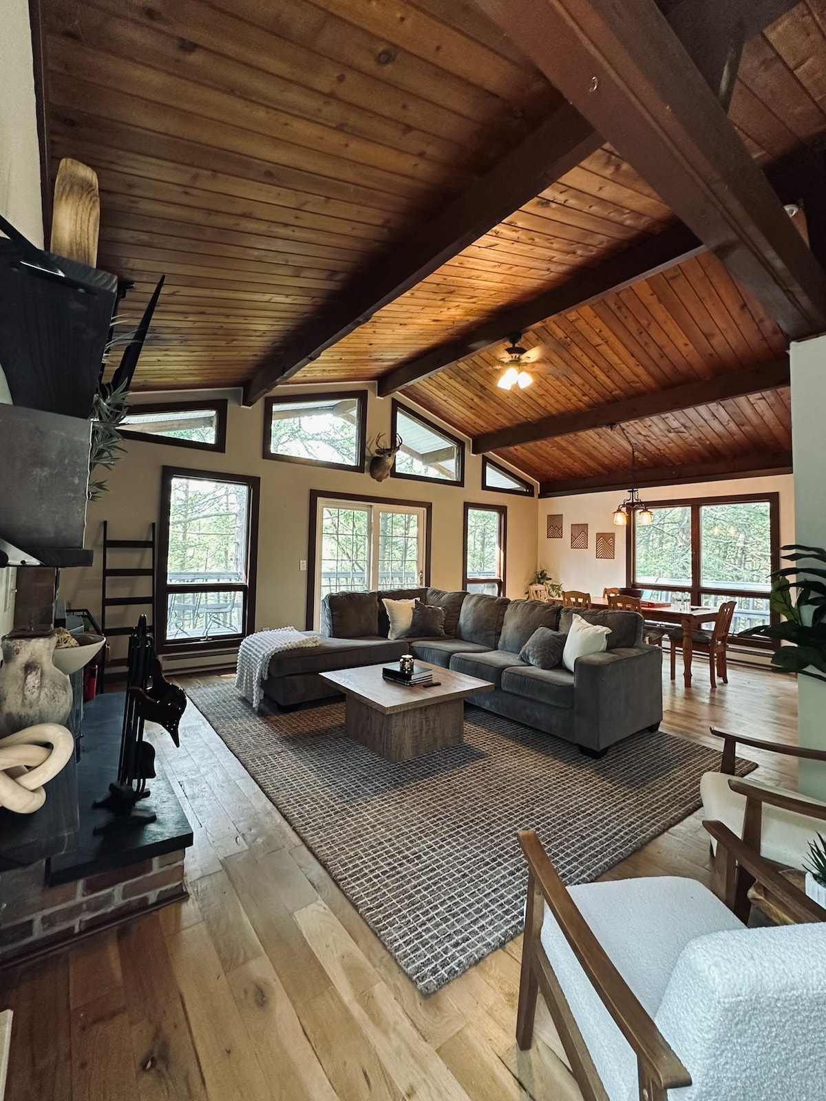 Descubre nuestro encantador refugio de montaña, perfecto para familias y amigos. Nuestra casa de 4 dormitorios y 2 baños cuenta con una nueva renovación, una gran cocina abierta y un comedor, así como una amplia terraza con parrilla al aire libre y un pozo para fogatas. Disfruta de vistas a la montaña y privacidad, a poca distancia en coche de las atracciones de Poconos como Camelback Ski Resort, Kalahari Water Park, Great Wolf Lodge, campos de golf, un casino y mucho más. Relájate y crea recuerdos con tus seres queridos en nuestra hermosa escapada a la montaña.