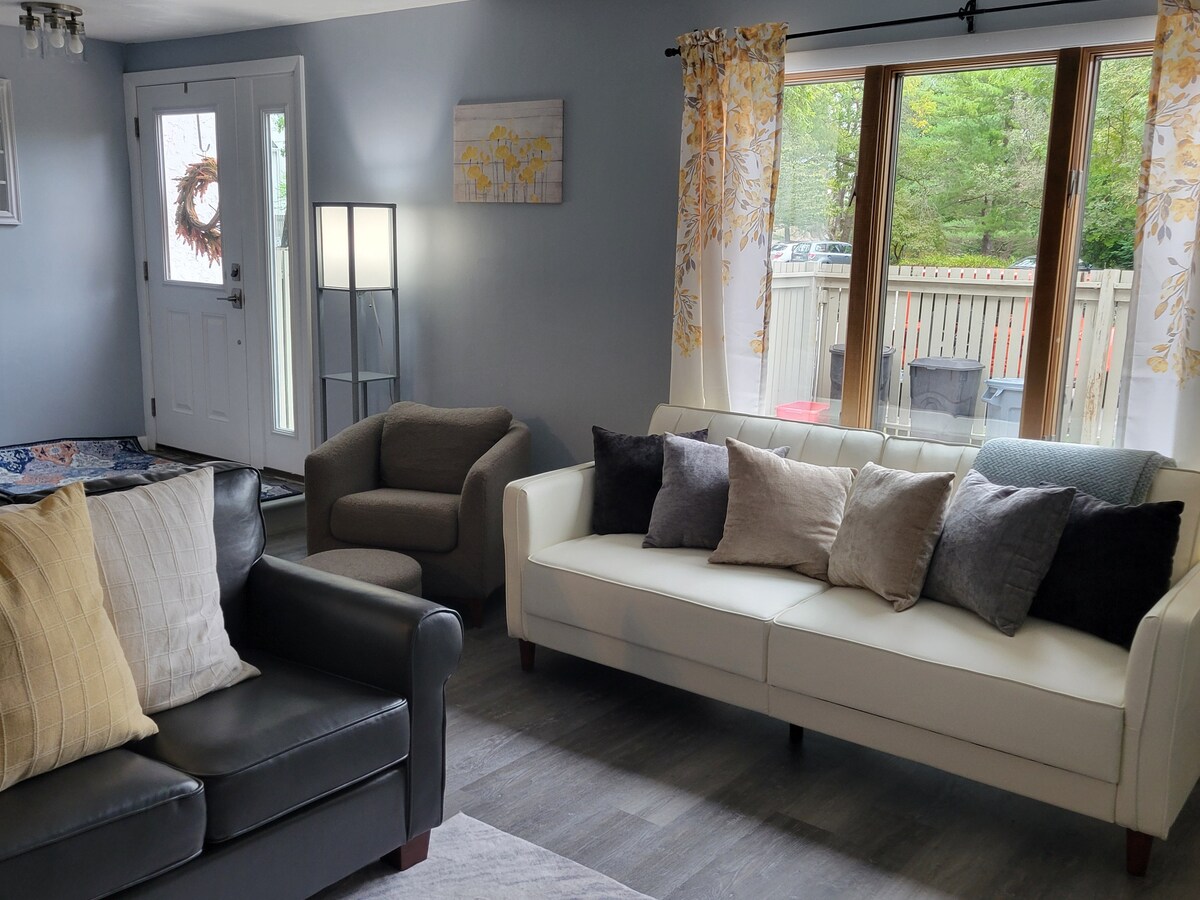 Modern look with all new appliances, bedding and furniture plus located in Park Forest Neighborhood on N. Atherton St, you will have the best of all State College worlds! Our home is located on a quiet street yet walking distance to shopping and restaurants. Walk down the street to a park with playground or to a Starbucks! All linens provided. Enjoy a free breakfast at home (waffle station with all supplies for you to make). Take CATA (bus) to anywhere in town. 2.5 miles to Penn State.