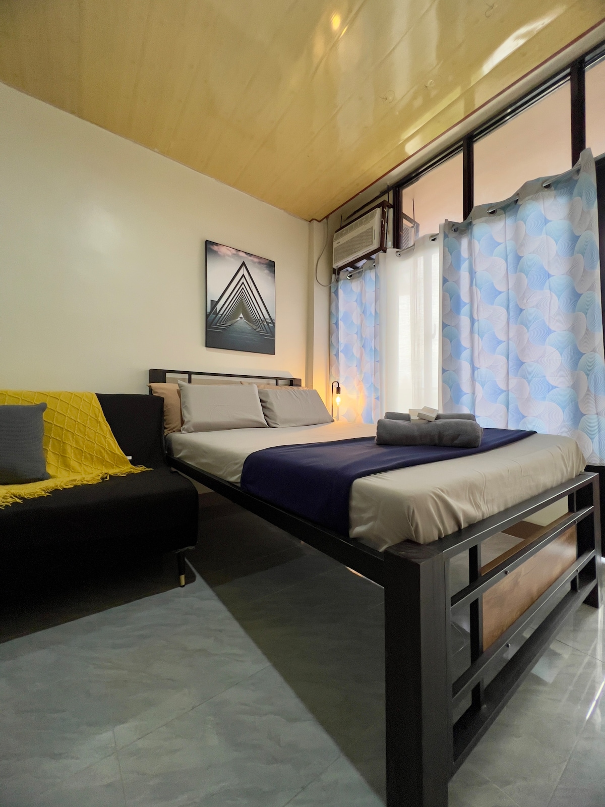 Nuestro objetivo es que tu estancia sea lo más cómoda posible. Nuestro apartamento de 1 dormitorio tiene todo lo necesario para un retiro relajante. Cuenta con una cocina equipada con utensilios básicos para cocinar. El baño también está equipado con artículos de aseo. Tienes todo el alojamiento para utilizar y acceso a la azotea. También hay parque infantil disponible. Te alojarás cerca del centro de la ciudad. Estarás cerca de cafeterías, restaurantes, la terminal central de autobuses, SM Naga y la catedral metropolitana. Wifi rápido ahora disponible.