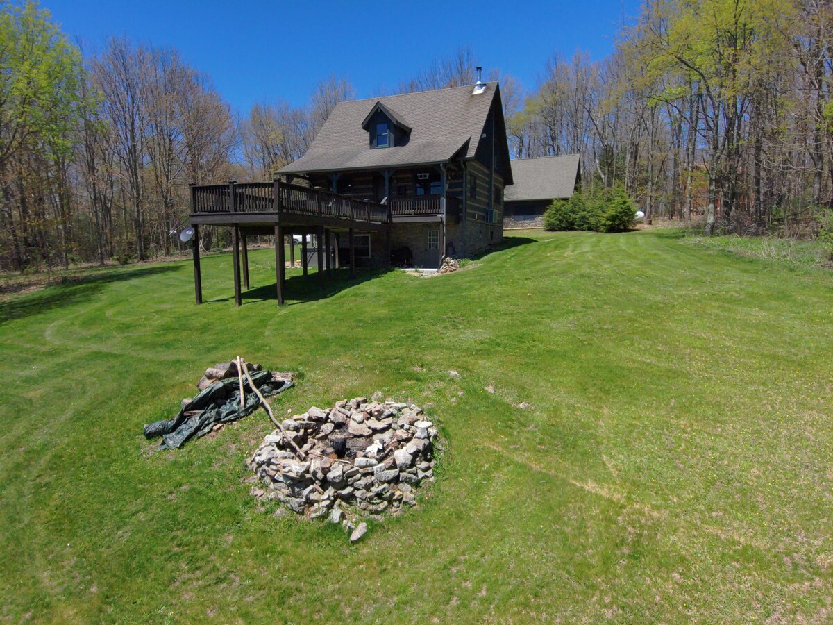 Casa de troncos en 11 acres con jacuzzi