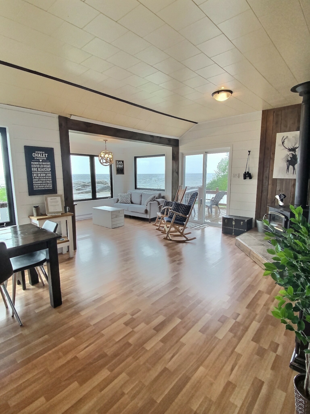 Con unas vistas inmejorables al mar, venga a vivir una experiencia donde el encanto marítimo y el rústico se unen. Situado muy cerca del Parque Nacional Forillon, este chalet ofrece comodidad, descanso y espacio. Venga a relajarse y observar los mamíferos marinos, los barcos y nuestras hermosas puestas de sol.