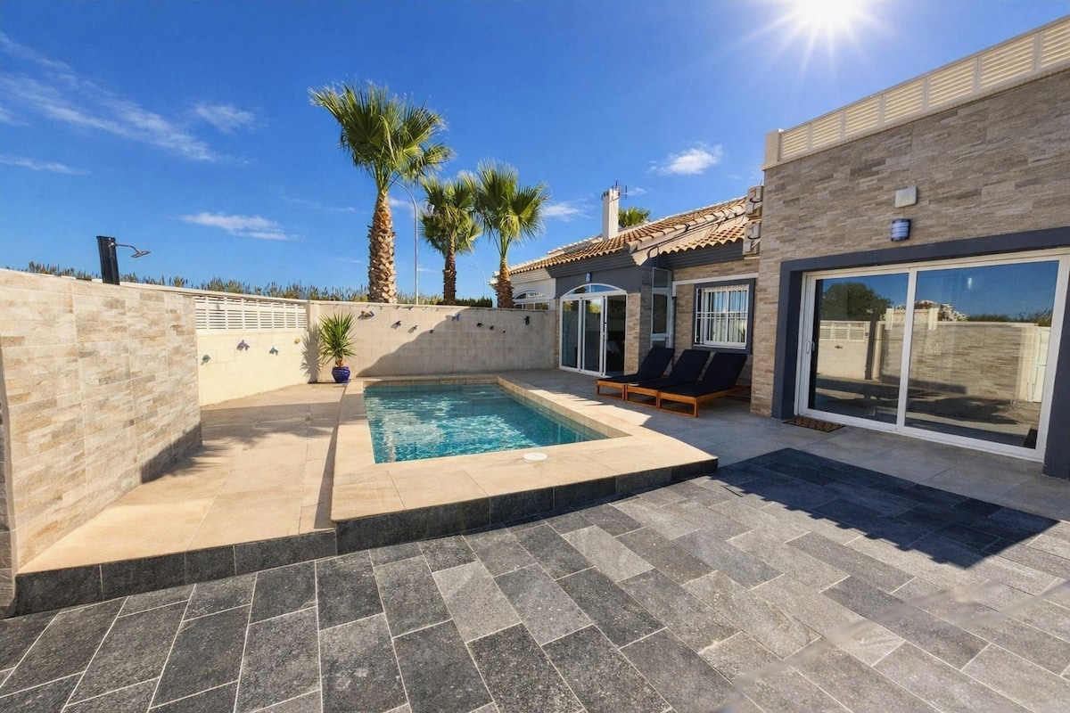 Casita Bombón con piscina y jardín en la playa