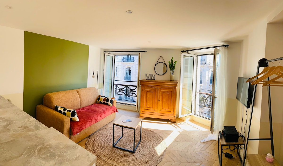 Realmente puedes vivir como un parisino en este apartamento, un estudio de diseño interior bohemio y elegante en París, ubicado en el distrito histórico de Le Louvre. Muchas oportunidades turísticas espectaculares, restaurantes elegantes y lugares emocionantes para el entretenimiento se encuentran muy cerca del apartamento.  Como el distrito es un centro en la red de transporte, los huéspedes también pueden viajar desde el apartamento con facilidad.   ¡Perfecto para una pareja que quiere un espacio hermoso con toda la comodidad del hogar!