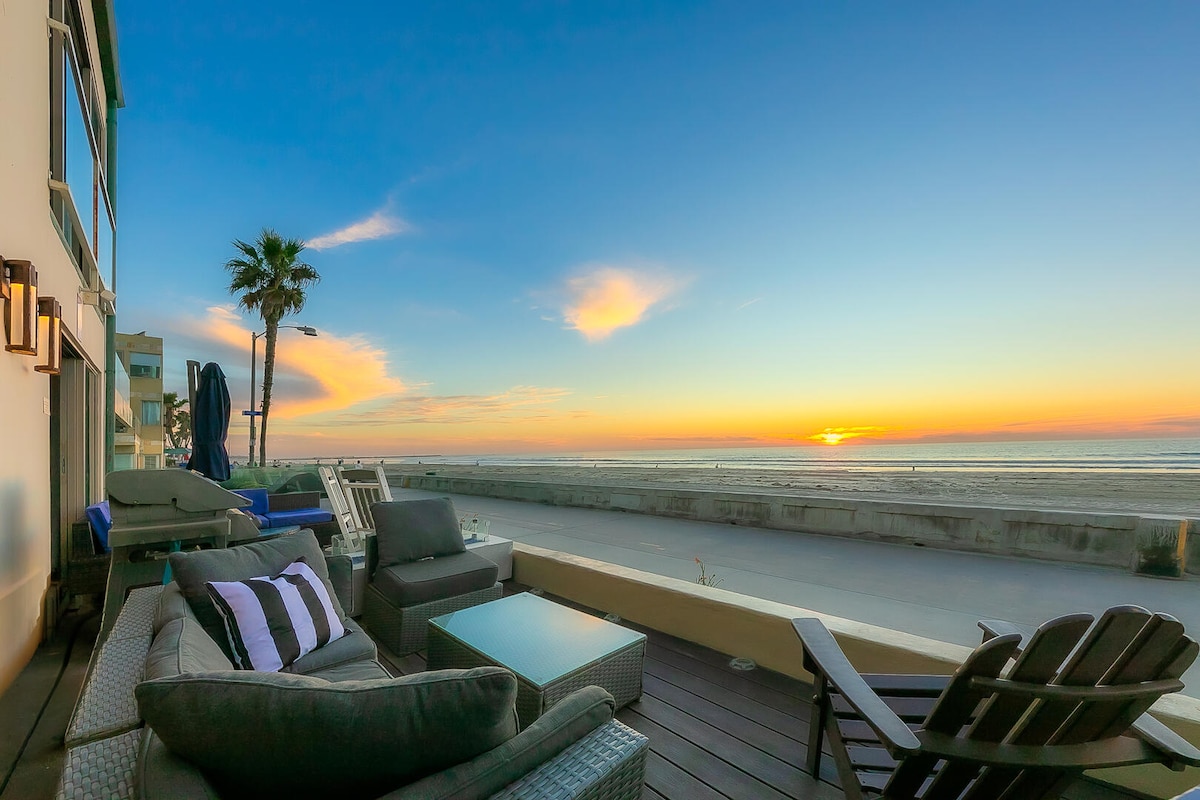 ¡FELICIDAD FRENTE AL MAR EN EL CORAZÓN DE MISSION BEACH! ¡Relájate y desconecta en este apartamento en el tercer piso de un ático frente al mar con vistas panorámicas al océano Pacífico y con vistas al paseo marítimo de Mission Beach! ¡Ubicado equidistante entre Belmont Park y Crystal Pier en el CORAZÓN de Mission Beach, a pie de todo, incluidos restaurantes, bares, vida nocturna, cafeterías y mucho más! Disfruta de las comidas en tu balcón privado y observa a la gente con el océano Pacífico como patio delantero.