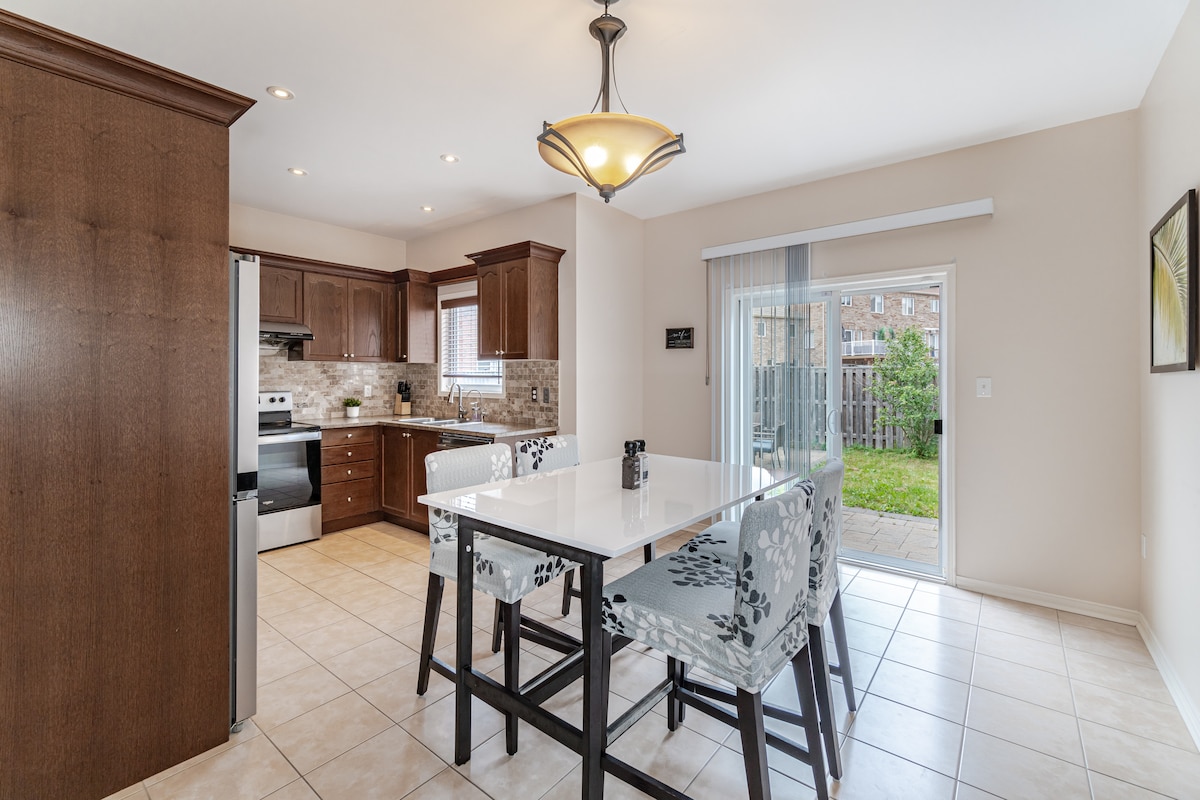 Una joya asequible: ¡equipada para ofrecer una excelente relación calidad-precio! Nuestra espaciosa y acogedora casa ofrece comodidades modernas, una cocina bien equipada, un hermoso patio trasero privado y un gran parque al otro lado de la calle, justo en el corazón de Mississauga (aproximadamente a 15 minutos del Aeropuerto Internacional Toronto Pearson, a 6 minutos de Square One, a 8 minutos de Heartland y a 57 minutos de Niágara). La casa se encuentra en un barrio tranquilo y es un lugar perfecto para relajarse y disfrutar de su tiempo. Ideal para familias numerosas/grupos. Comuníquese con nosotros para reservar un número menor de noches.