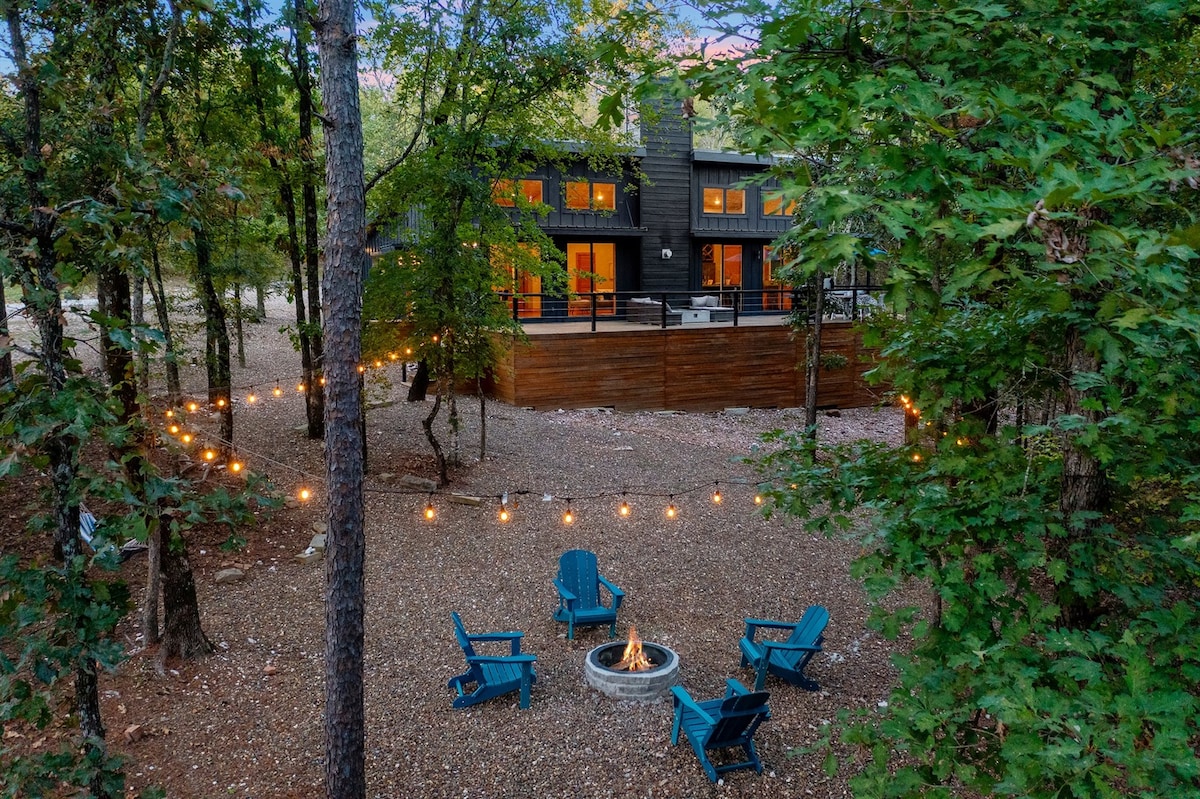 ¡Bienvenido a The Tree + House en Indian Point! Esta casa del árbol de lujo personalizada se construyó pensando en la comodidad y la relajación. Perfecto para hasta cuatro huéspedes, está rodeado de bosque y lleno de luz natural gracias a las ventanas del suelo al techo que ofrecen unas vistas impresionantes del lago Table Rock. Te sentirás escondido en tu propio refugio privado, pero aún así estarás a solo minutos del agua y de Silver Dollar City. Es la mezcla ideal de naturaleza tranquila y estilo moderno.