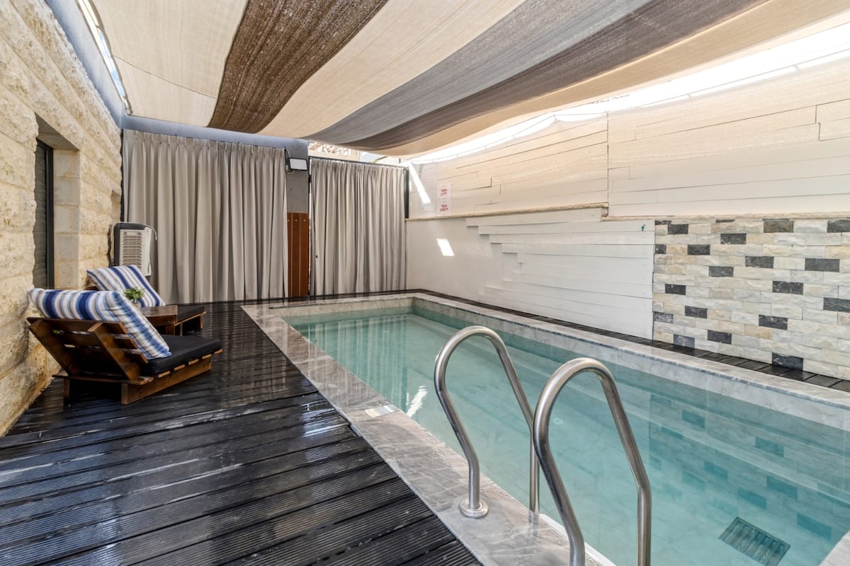 Hermoso y lujoso apartamento de 3 habitaciones en una villa en Jerusalén con una entrada independiente, para 6 inquilinos, la unidad de vacaciones con jacuzzi en el patio. Y una piscina en un gran patio abierto, hermosa, lujosa y climatizada durante las estaciones de transición. El apartamento está totalmente equipado, cerca del centro comercial y de un centro comercial del vecindario, el transporte público está disponible para todas las partes de la ciudad y el estacionamiento está disponible frente a la casa de forma gratuita y disfruta con toda la familia en el lugar.