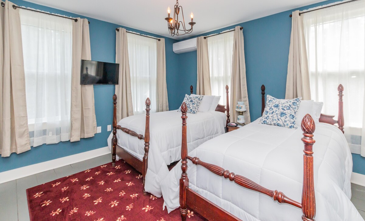 Una bonita habitación con baño privado. Estoy publicando esta una habitación para 1 persona... Tiene una cama de una de las habitaciones posturédicas muy bonitas la mayor parte del tiempo, pero también puedo poner una cama de tamaño completo para que 2 personas puedan alojarse por 10 dólares más... Si te gustan las casas históricas antiguas, esto es interesante porque esta habitación es una de las habitaciones de hotel más antiguas de Estados Unidos... Lo más probable es que el edificio sea de finales del siglo XVIII, pero fue construido como una casa, no una casa, por lo que esta es una habitación de hotel histórica a poca distancia.