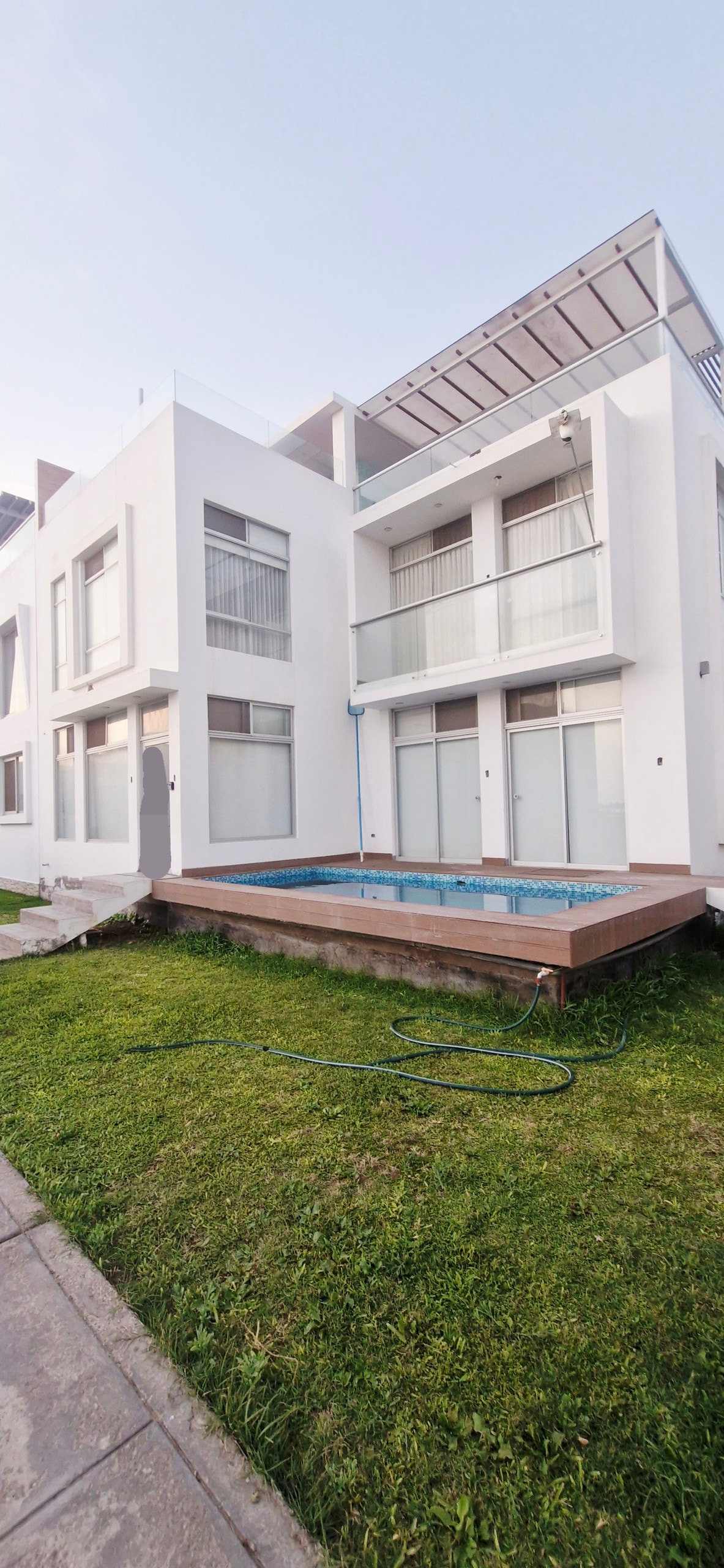 Relájate con toda la familia en este tranquilo lugar para quedarse en vacaciones. Contarás con una casa completa con amplia piscina en el primer piso, acceso directo a la playa, terraza con parrilla, agua caliente, todos los servicios y completamente amoblada. Además podrás disfrutar de las instalaciones de nuestro condominio como canchas de froton, tenis, fulbito, Voley, piscinas y fogateros en la playa. Ideal para familias.