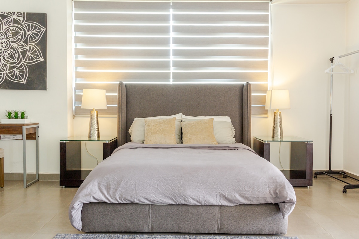 Amplio departamento nuevo de 160 m2, ubicado en el corazón de Juriquilla ofrece una experiencia única, con increible tecnologia, iluminacion, amenidades y entretenimiento. Si busca lo mejor, no busque más y venga al departamento más moderno y lujoso de Querétaro para una estancia inolvidable Caminando del Starbucks, Walmart, bares y los mejores restaurantes como Sonora Grill & Hunger, este departamento lo tiene todo, camas cómodas, amplio balcón, TVs 4K OLED y Home-Cinema de 100" desde su cama