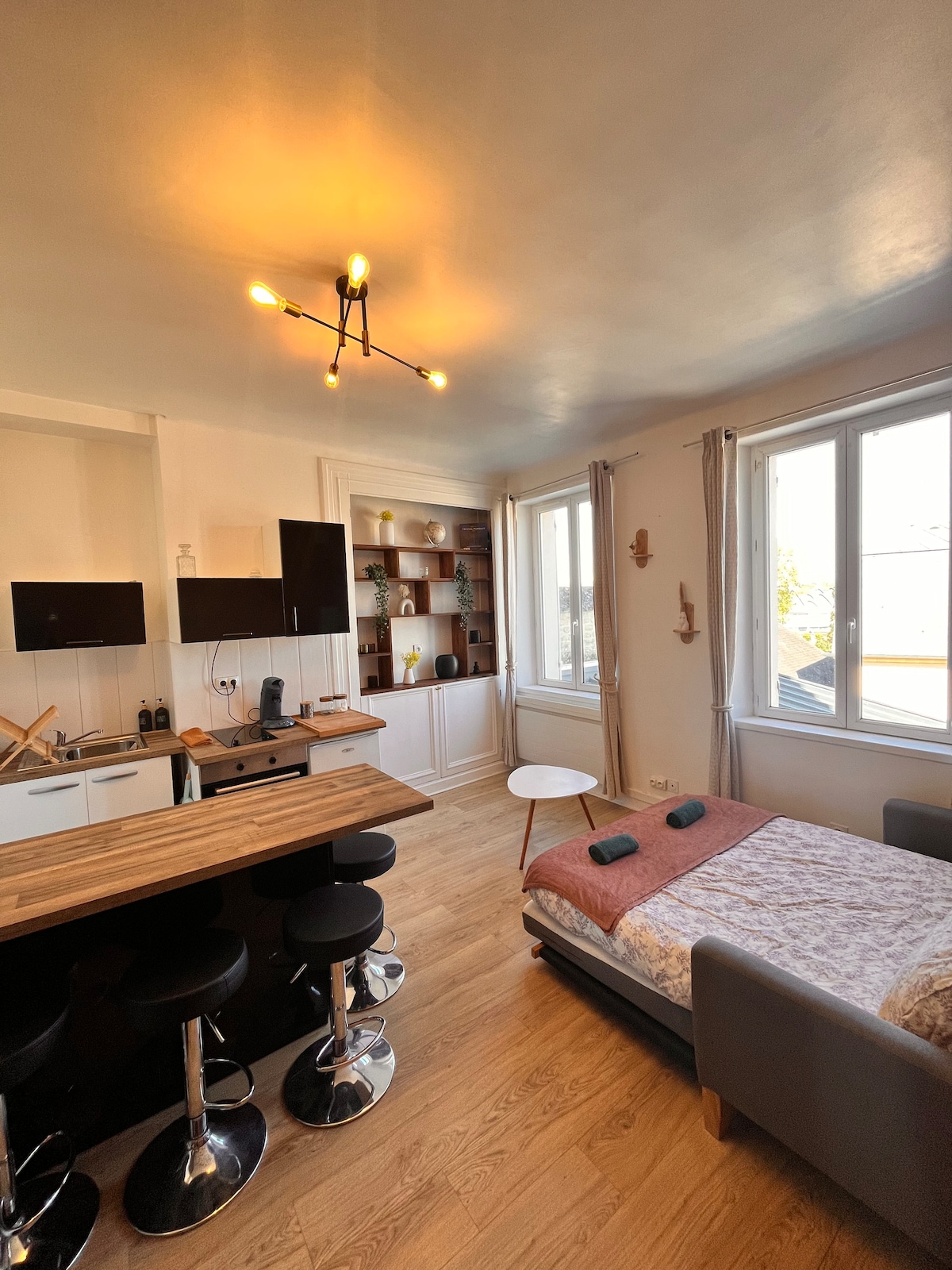 ¡Hola! ¡Deje su equipaje en este encantador dúplex completamente renovado en un edificio del siglo XVIII en el corazón del centro histórico de Caen y póngase al ritmo del estilo de vida francés! Piedras a la vista, chimenea, porcelana de Limoges y unas vistas magníficas de los campanarios de la famosa Abadía de los Hombres te transportarán a la época de Guillermo el Conquistador, al tiempo que te ofrecen la comodidad de un apartamento moderno.