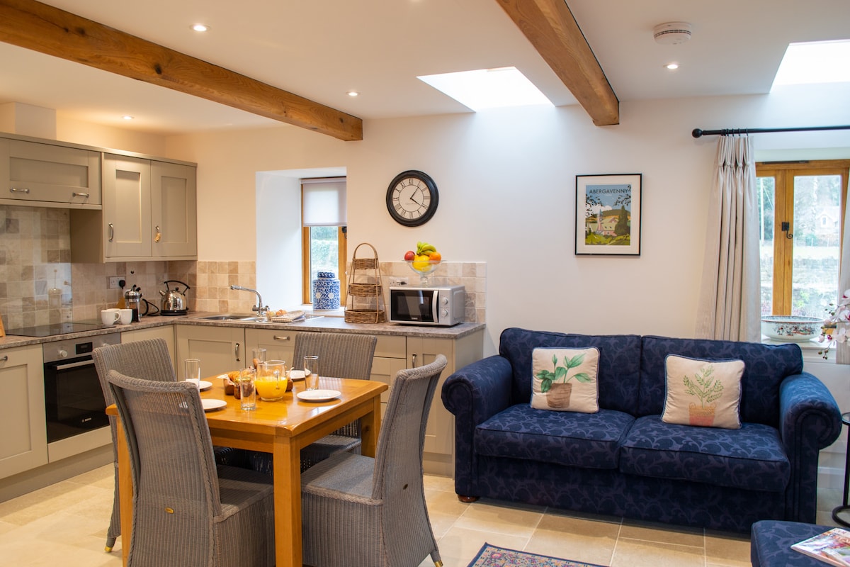 Rústico y con carácter, pero contemporáneo y espacioso, 'Little Llanvolda' proporciona la escapada perfecta para parejas o una familia. En el interior, puedes disfrutar de las vistas del jardín desde tu cama tamaño king, tomar un largo baño en la encimera o acurrucarte frente al quemador de leña en el espacio abierto. En el exterior, puedes tomar el sol en tu terraza privada escuchando el canto de los pájaros o pasear junto al arroyo a unos minutos a pie sobre nuestros campos circundantes.