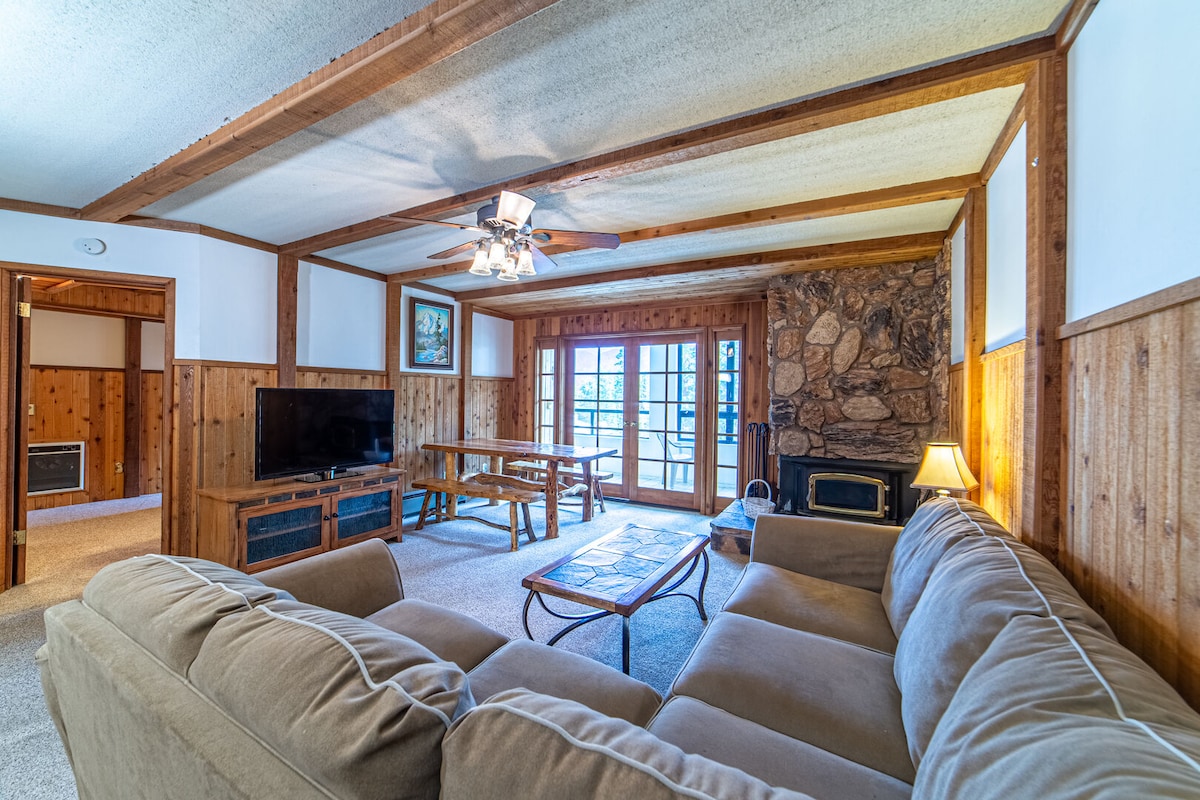 Our comfy, cozy Courchevel home in Mammoth Lakes, California is just a hop, skip, and jump away from the lifts at Canyon Lodge and an easy walk or free trolley ride to the Village. This welcoming retreat is equipped with Wi-Fi, a pellet stove, radiant floor heat, and a private two-car garage with Tesla wall charger. **Max 2 car limit 2 bedroom plus loft with futon, 2 bathroom Mammoth Lakes condo will certainly keep you warm and toasty after a long day on the slopes.