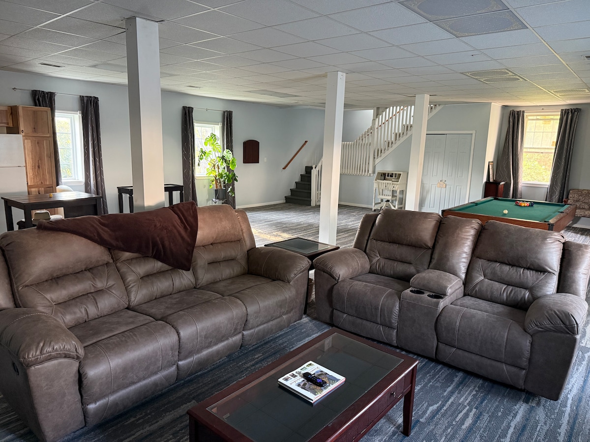 Esta suite tiene entrada privada, vistas panorámicas y una terraza privada de 300 pies cuadrados. Es posible que veas vida silvestre en la parte trasera. Estamos en el campo, a 12 minutos en coche al norte de Ellettsville. Si un retiro tranquilo y la vida en el campo es para ti, este es el lugar. Estamos a 20 minutos de Oliver Winery, del parque estatal McCormick's Creek, de Bloomington y del bosque estatal Morgan-Monroe. La cama tamaño queen tiene capacidad para 2 adultos y el sofá cama extraíble tiene capacidad para 2. Se proporciona un televisor, pero solo se puede transmitir desde tus dispositivos. (2) noches mínimo los fines de semana de eventos de la IU.