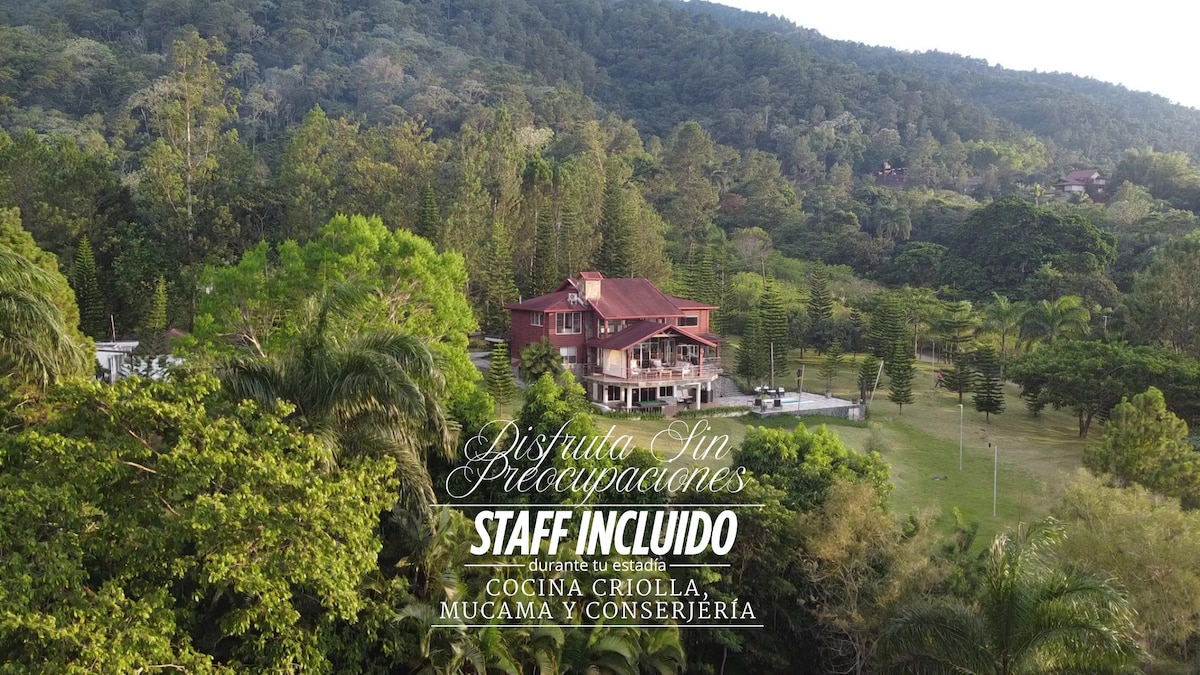 El rincón del mundo con el que siempre has soñado. Ven y descubre esta exclusiva villa para 20 personas, con una de las vistas más privilegiadas de Jarabacoa. Cuando estás llegando, parece que estás subiendo por una offroad de Suiza. El patio es un sueño, e integra una piscina aclimatada junto al bar y área de billar, domino y BBQ. Olvídate de preocupaciones. Tu estadía incluye servicio de cocina, limpieza y conserjería, para una estancia sin esfuerzo. ¡Reserva hoy antes de que esté ocupado!
