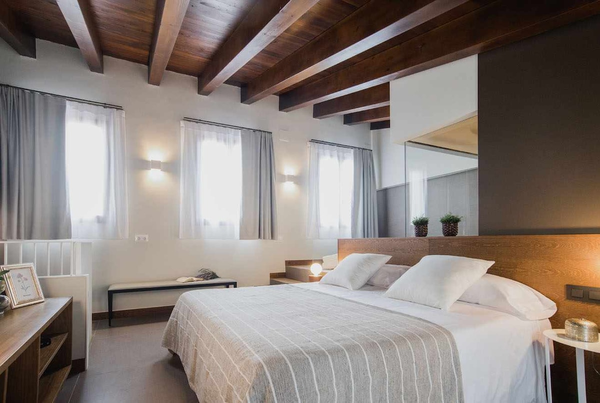 Gran loft con maravillosas vistas a la montaña y el Jardín Botánico del municipio. Es la planta de arriba de una casona restaurada de principios del S. XVIII. El loft es abierto, tiene una zona con cama de matrimonio y dos terrazas, otra zona comedor con smart TV y sofás y otra zona con un sofá-cama doble. Además tiene baño con ducha y un altillo al que se accede por una escalera espectacular en el que está la cocina, completamente equipada y con zona de comer Ideal para una o dos parejas.