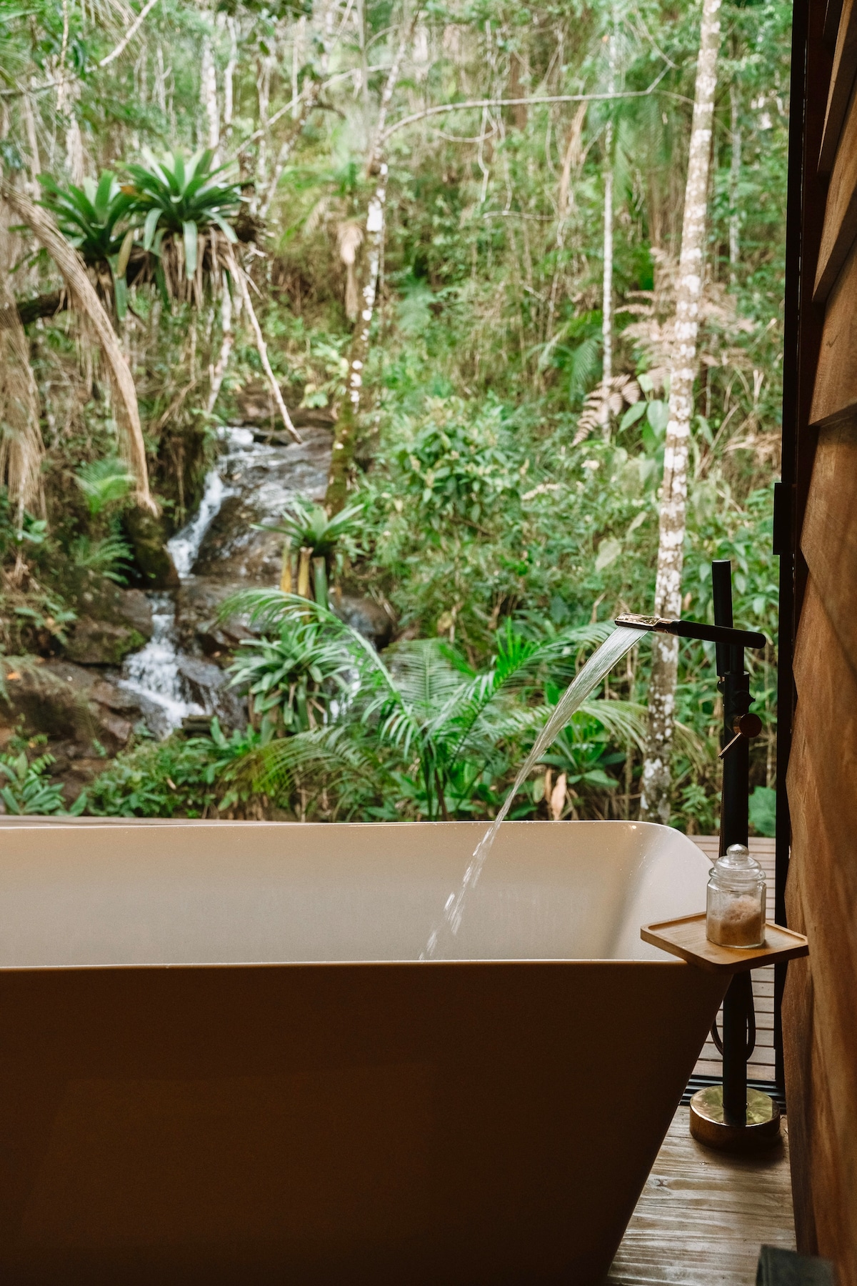 Ubicada en medio de una gran reserva forestal, con vistas a la cascada, incluso de noche, alojarse en la Cabana es una experiencia única, es un verdadero baño de bosque El lugar es totalmente privado, seguro y tranquilo, donde el único sonido es el de la cascada. Un lugar para hacer una hoguera junto al arroyo con cómodos asientos y la cascada iluminada como telón de fondo. Y, por supuesto, una salamandra de hierro junto a la cama para disfrutar de un fuego y hacer té.