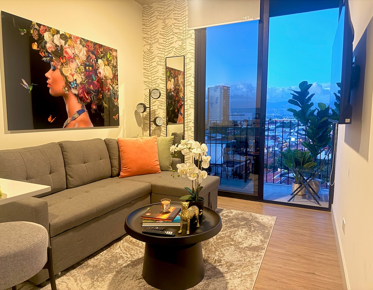 Disfruta de la tranquilidad de este smart loft, elegante y céntrico con vista a la ciudad! Ideal para relajarse. Cuenta con todos los servicios necesarios para hacer de tu estadía la más agradable con la más alta calidad. Su ubicación es favorable ya que se encuentra cerca de restaurantes, centros comerciales y supermercados. Está a solo 15 min del casco central de San José. Cuenta con una gran cantidad de amenidades como piscina temperada, cine, sala de estudio, gimnasio y área de coworking.