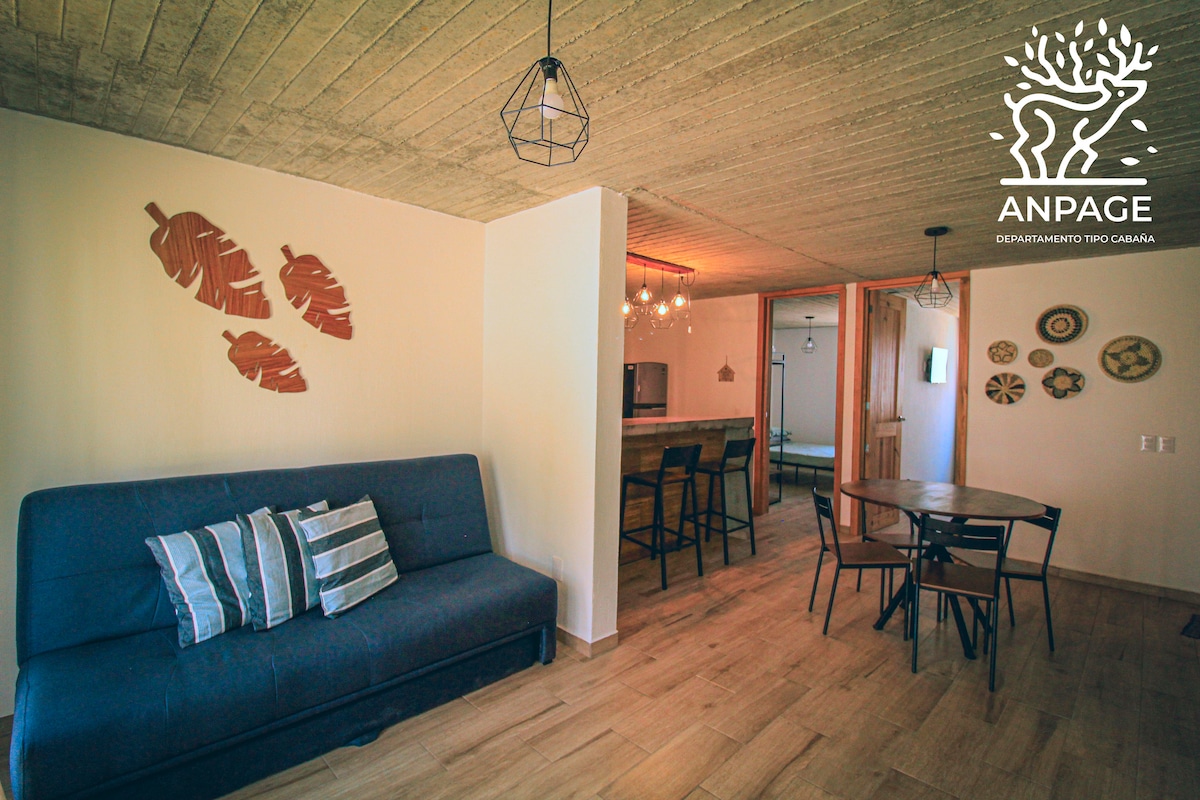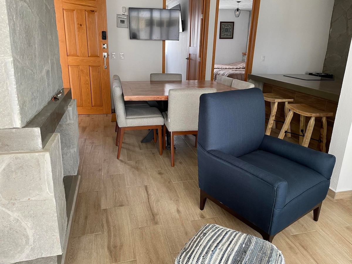 Relájate en este espacio tan tranquilo y elegante, Disfruta del encantador entorno de esta romántica Cabaña Prieta. Se encuentra ubicado a 5 km de la plaza principal, esta rodeada de enormes pinos, cuenta con acabados de lujo, Cocina equipada, Jacuzzi, Terraza con vista Panoramica, TV con sistema Dish. Todo lo necesario para que pases un agradable noche con tu pareja en la naturaleza.
