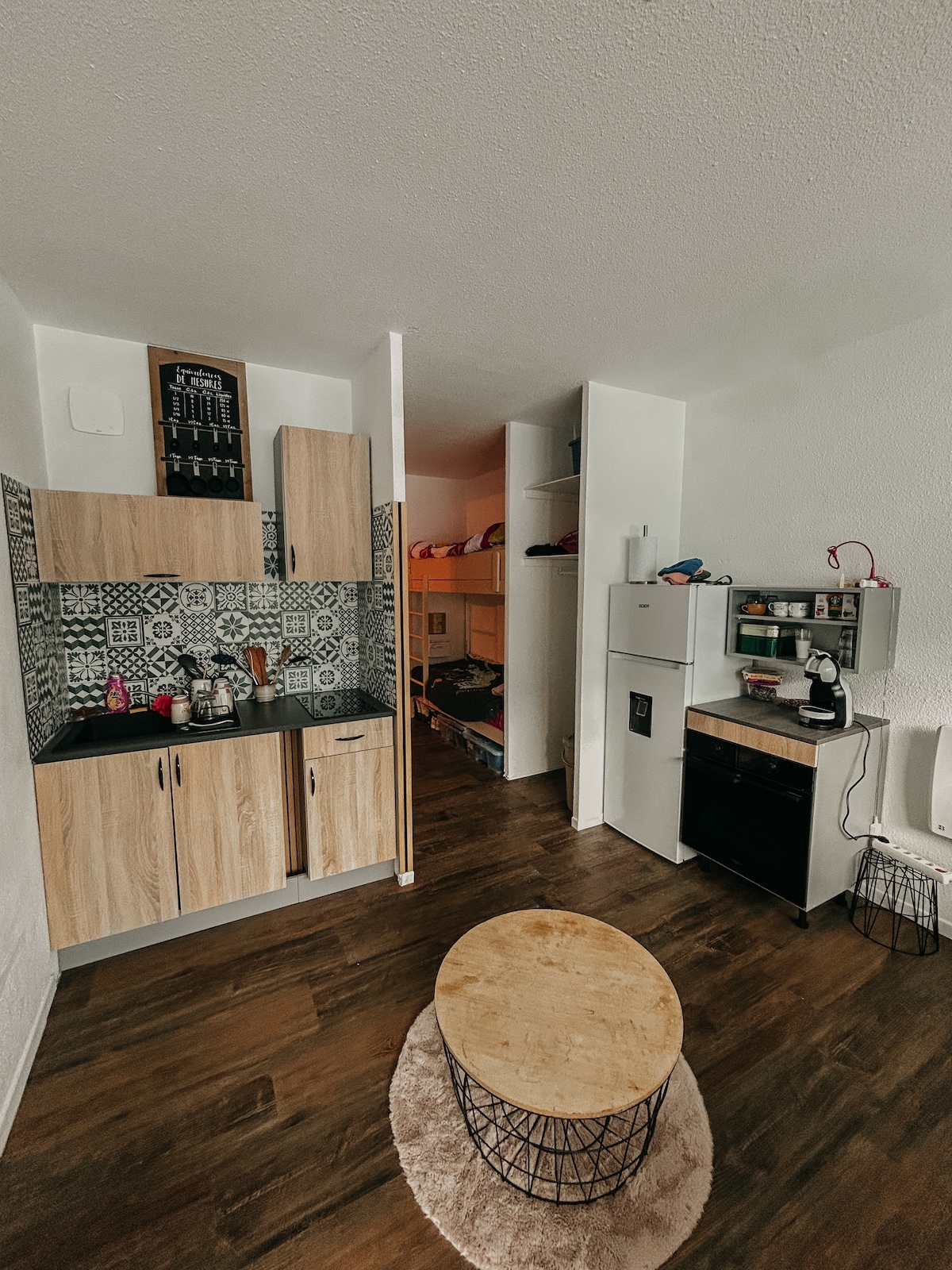 Este agradable nido de 27 m2 ofrece todas las comodidades necesarias para una estancia relajante. Consta de: - 2 camas de 140 : 1 cama nueva y 1 sofá cama nuevo. - 1 cocina totalmente equipada (gofrera, aparato de fondue, raclette, cafetera tassimo, exprimidor, tostadora) - 1 zona de ducha (secador de pelo, plancha) - 1 zona de TV (wifi, Netflix, Prime...) - 1 balcón dedicado al mantenimiento del material (mesa rellena) La ropa de cama solo está incluida en el servicio de limpieza a 60€ por estancia. NO FUMADORES