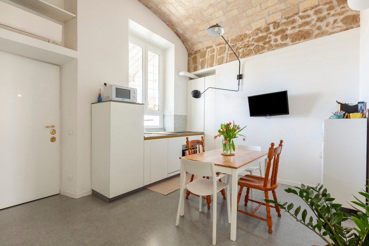 Disfruta de tus vacaciones en silencio y en el corazón de la Roma imperial, a pocos pasos del Coliseo y de las bellezas de Roma. El apartamento es amplio, luminoso y romántico, y está situado en la cuarta planta sin ascensor de un edificio de mediados del siglo XIX con vistas a los tejados. Está finamente restaurado, poniendo en valor los elementos arquitectónicos originales de la época, las vigas de madera y los muros de ladrillo. Ideal para 2 personas, además de la cama doble hay un cómodo sofá cama.