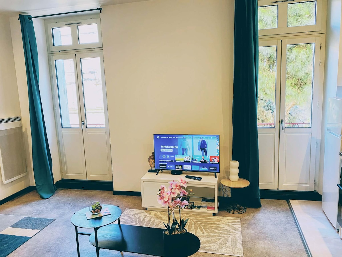 Apartamento totalmente equipado con capacidad para 4 personas. Consta de una cómoda habitación, una cocina nueva y moderna, un salón acogedor y climatizado, así como un aseo independiente. También disfruta de una terraza amueblada con mesa y sillas. Perfecto para tus momentos de relax al aire libre. Cerca de todas las comodidades. Ocio y eventos A menos de 100 metros, descubra el parque más bonito de Marmande, lugar emblemático del famoso festival Garorock.