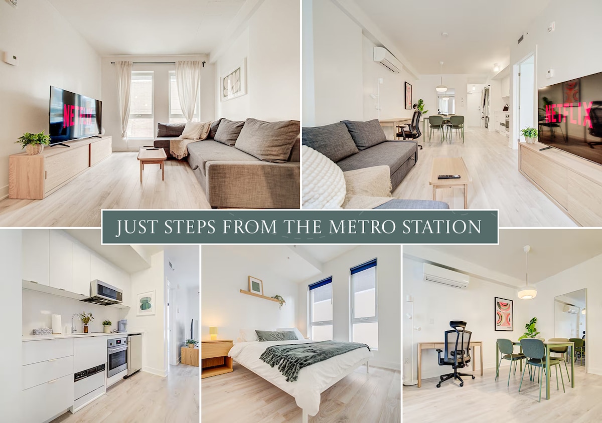 Disfruta de un apartamento luminoso y moderno de 2 dormitorios en el corazón de Montreal, diseñado para el estilo, la comodidad y la conveniencia. Los interiores aireados con tonos beige, una cocina totalmente equipada y comodidades inteligentes crean un refugio acogedor para familias, amigos o viajeros de negocios. Con cafés, tiendas y atracciones a pocos pasos, este elegante alojamiento ofrece la base perfecta para vivir en la ciudad sin esfuerzo.