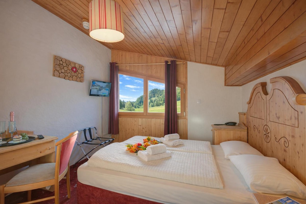 Habitación rústica con temática de chalet en el Hotel Edelweiss