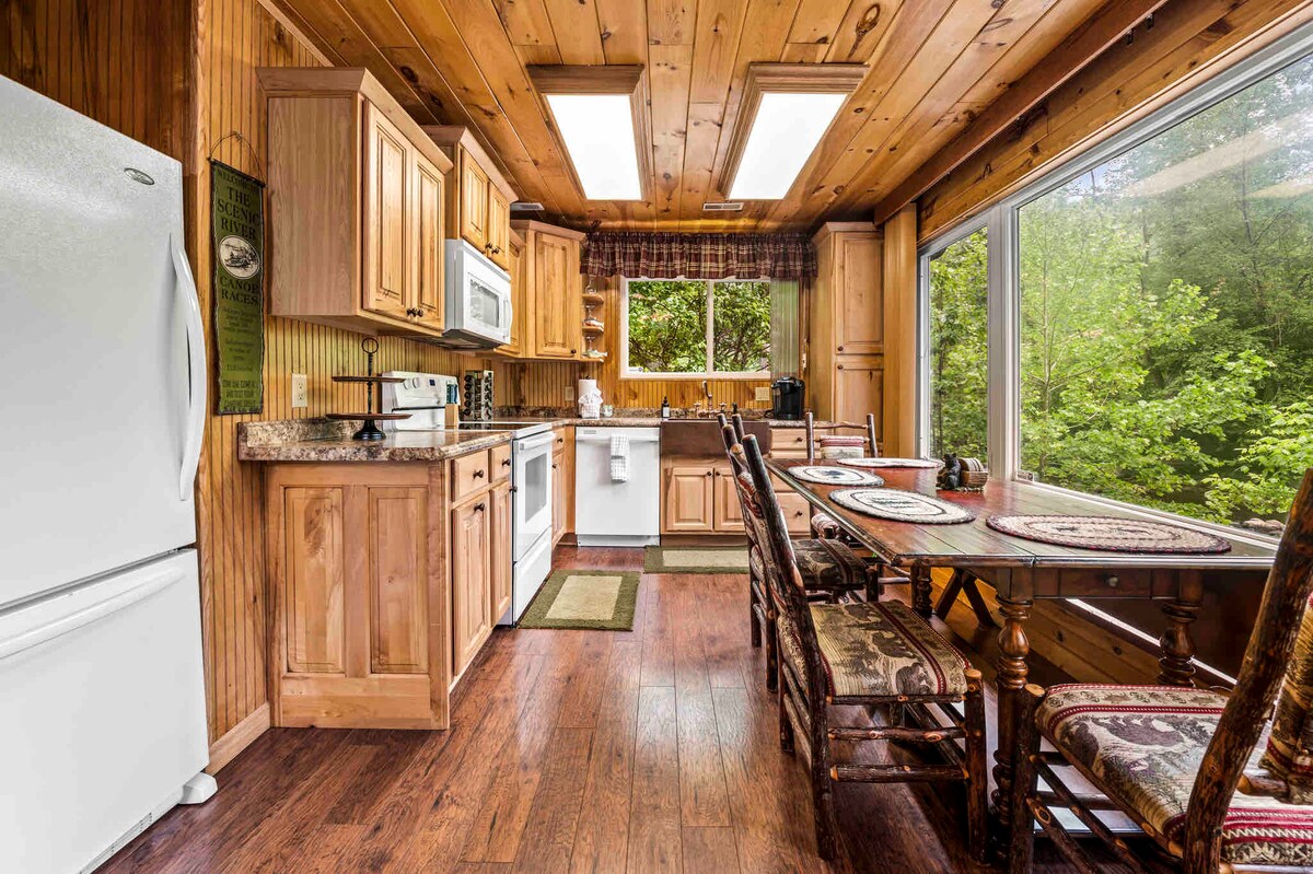 ✦Cabaña Riverside Retreat, características✦ ¡✦UBICACIÓN! ¡A PIE de Gatlinburg Strip (a solo 6 minutos a pie)! ¡Parada de tranvía cercana! *¡No hay carreteras empinadas! ¡Estacionamiento ✦PLANO para 3 personas! ✦¡Jacuzzi! ¡Sonidos✦ TRANQUILOS, tranquilos y fluviales desde el momento en que llegas! ¡✦Capacidad para 8 personas! ✦¡A orillas del río! pesca de truchas ✦Lavadora ysecadora Wifi ✦de alta velocidad gratuito ✦¡Cocina totalmente equipada! ¡✦Chimenea de gas en el interior! ✦¡Excelentes evaluaciones! ✦Caminata a: restaurantes locales, montaña rusa, golf put-put, tiendas de conveniencia, tiendas locales, el acuario y mucho más.