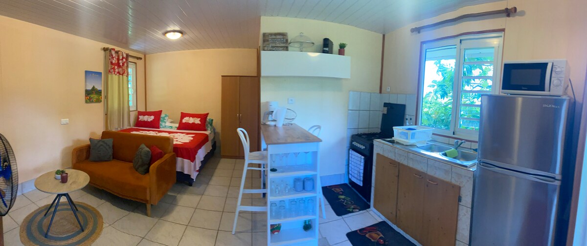 EL ESTUDIO ¿Te apetece un nido acogedor y moderno en Moorea para una escapada romántica, con tu BFF o en solitario? Estás en el lugar indicado. Su piscina privada y su terraza con impresionantes vistas a la montaña perforada, le permitirán tomar el sol para los perezosos o compartir una cena después de una hermosa caminata para los más motivados. Acceso Mua P**a: 10 minutos a pie Ferry-commerce: 5 minutos en auto Farmacia-centro médico: 1 minuto a pie Laguna: 1 minuto a pie Playa: 10 minutos en auto