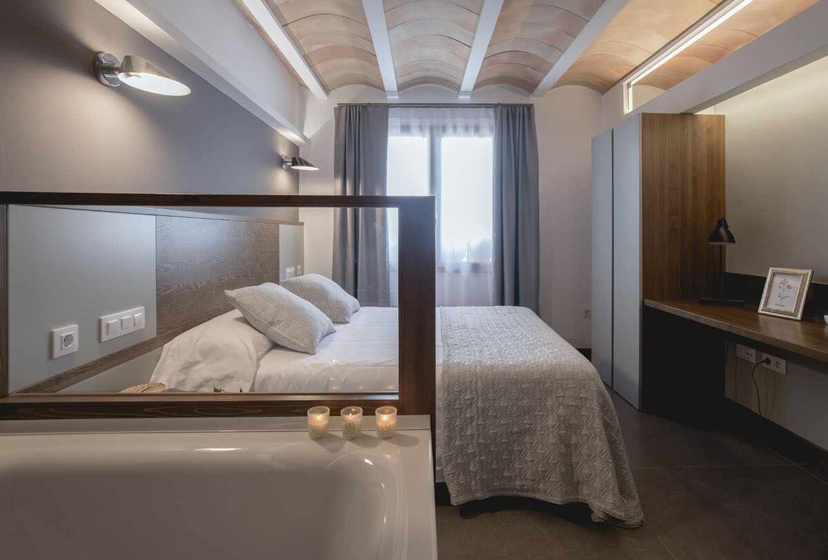 Apartamento ideal para una pareja y con capacidad máxima hasta 4 personas. Cocina totalmente equipada, 1 baño con ducha, cama 160x190, bañera de hidromasaje, armario y escritorio en la habitación. Sofá-cama doble en la zona de estar, TV 49" y Wi-Fi gratis. Amplio balcón con vistas a la montaña. Ubicado dentro del recinto amurallado de Morella. A tan sólo 2 min. de la zona de aparcamiento público.