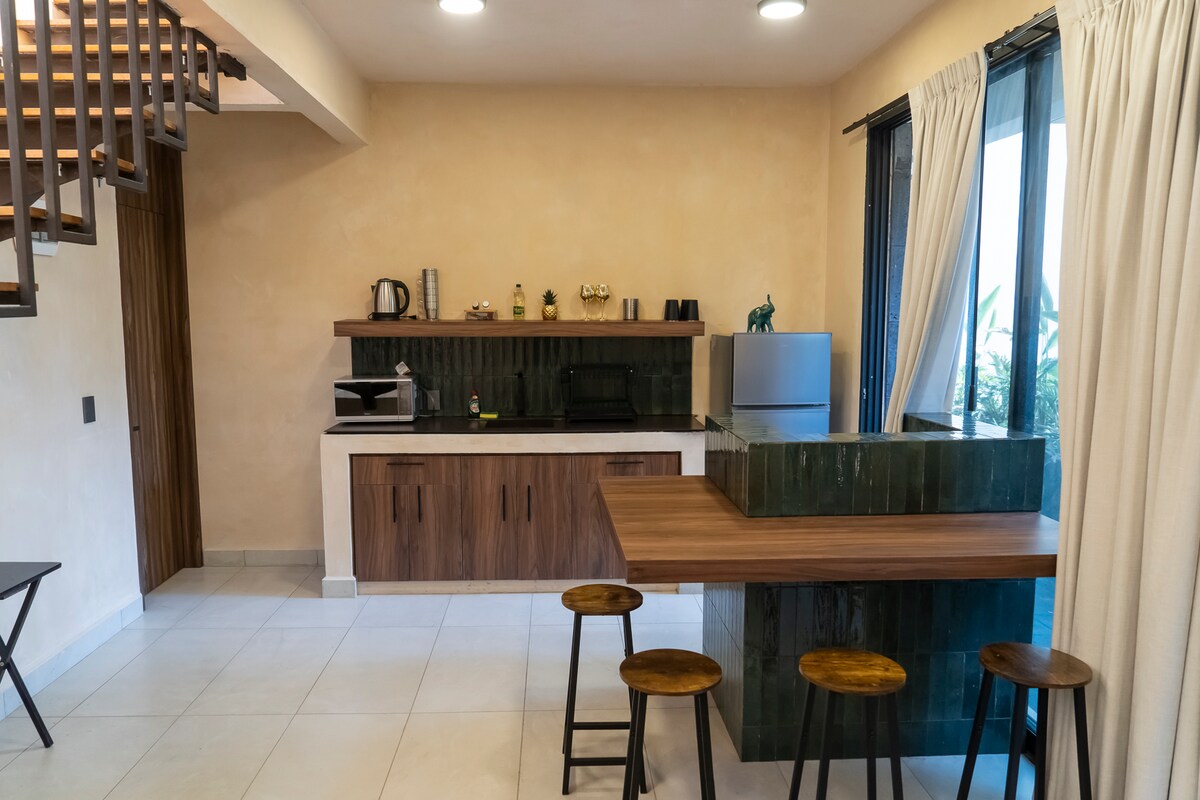El Loft Azul es un espacio romántico y acogedor. Ha inspirado a escritores y pintores, acunado a parejas y familia, a madres y padres solteros con sus peques; y alojado a personas en home office que desean disfrutar escapadas. Rodeado por un bosque extenso y enclaustrado, propicia que nuestros huéspedes y la naturaleza se encuentren; y disfruten asados, fogatas nocturnas, celebren el amor y la vida. A 17 minutos de Cuernavaca, a 5 minutos de Rincón del Bosque y a 30 minutos de Tepoztlán.