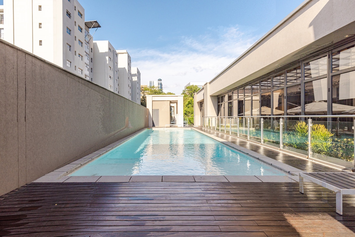 ¡Te damos la bienvenida a tu elegante hogar lejos de casa! Este elegante apartamento combina comodidad y conveniencia con una cocina completa, Netflix y wifi sin límite. Sal a una tranquila piscina al aire libre y a una acogedora zona de club. Ubicado a pocos minutos de Sandton City y otros centros importantes, tendrás lo mejor de las compras, restaurantes y entretenimiento de Johannesburgo justo a tu puerta. Ubicado en un complejo seguro y de alta gama con seguridad las 24 horas, la paz y la privacidad son las principales prioridades