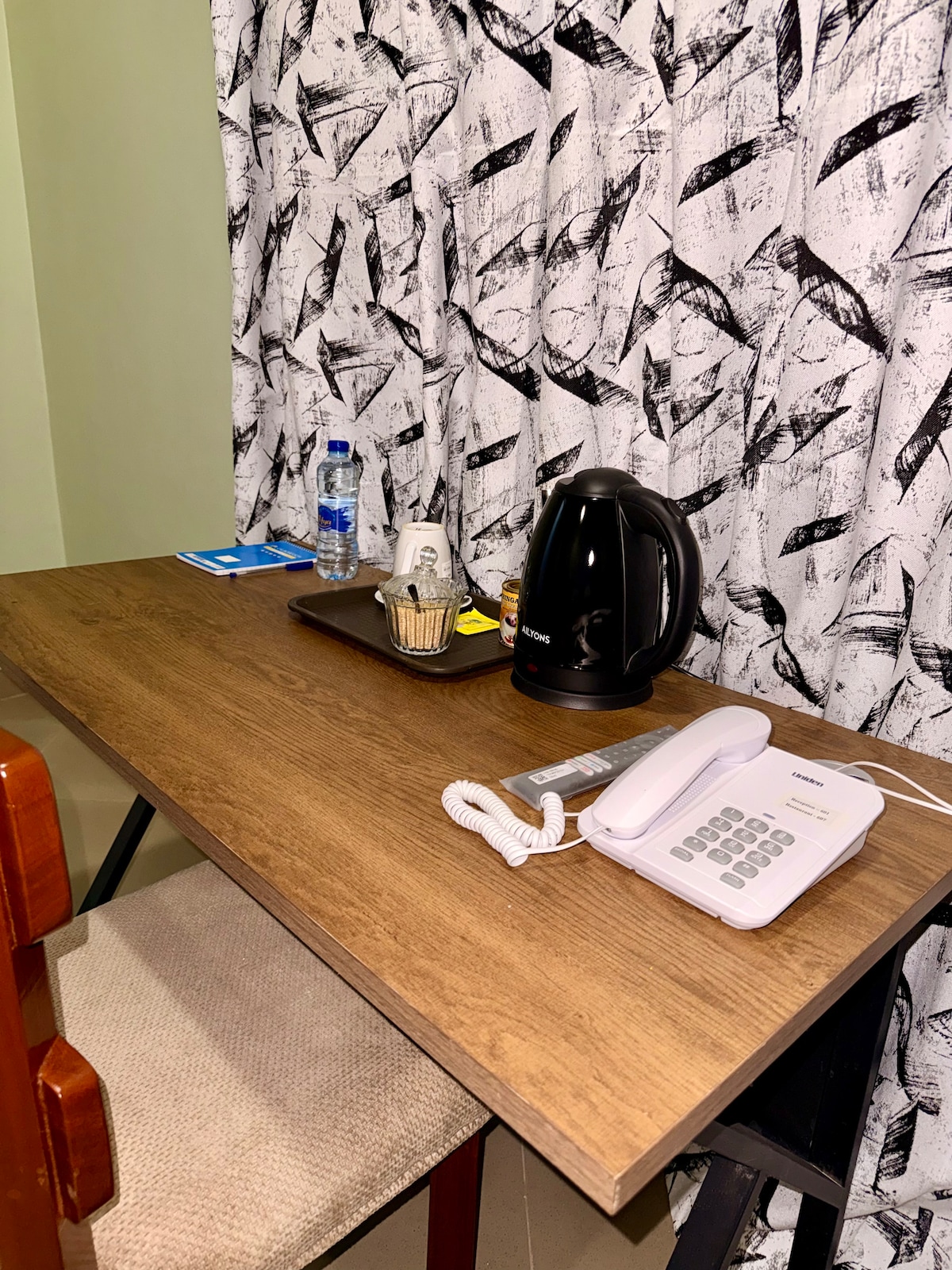 Comfortable AC room ideal for business or leisure travelers, featuring a work desk, Wi-Fi, private bathroom, and TV with DSTV/Netflix access. Complimentary breakfast included.