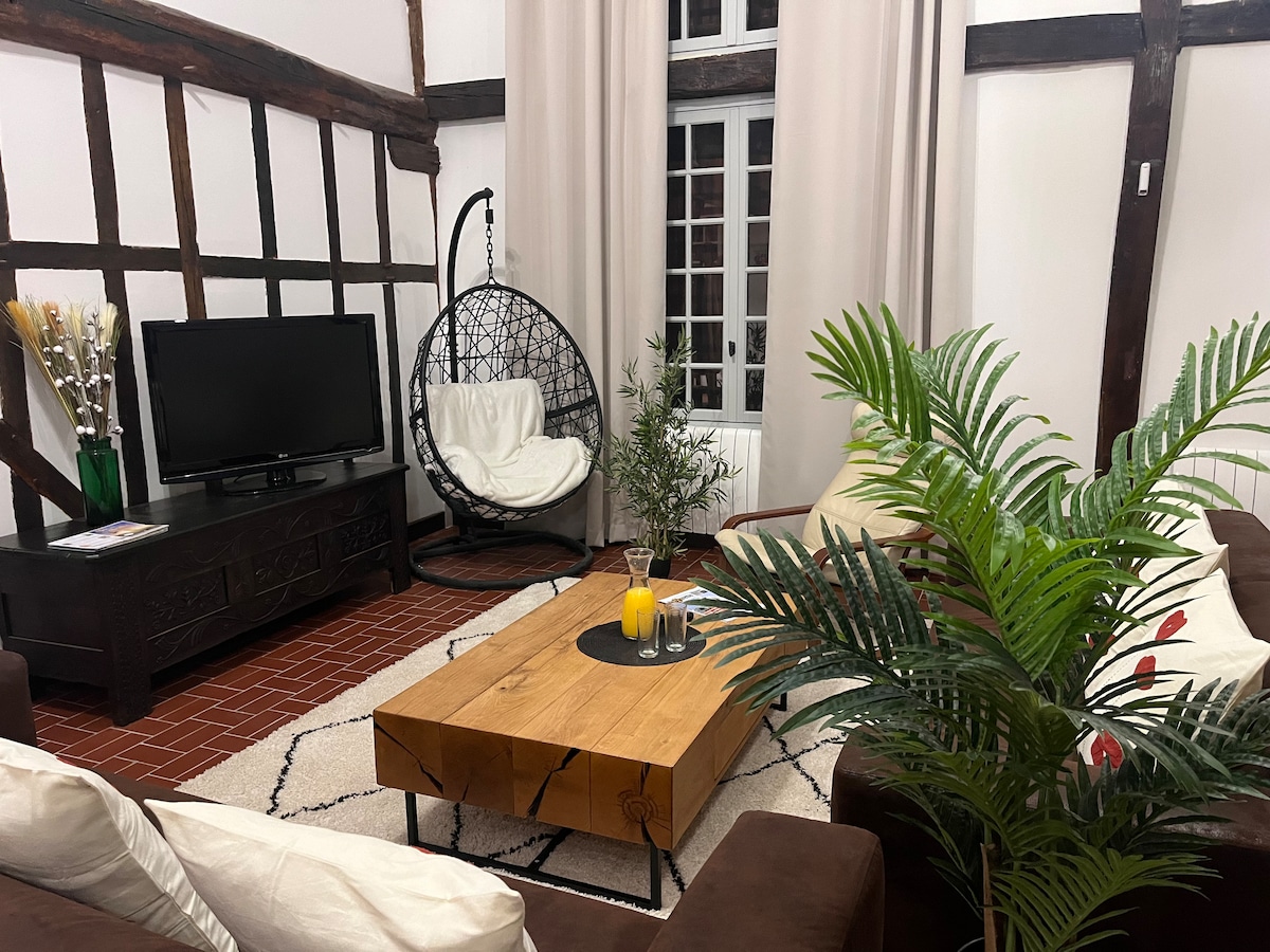 Relájese en este alojamiento tranquilo y elegante. Pequeña casa de estilo champenoise, situada cerca del centro histórico de Troyes, los lagos del Bosque de Oriente, los viñedos y las tiendas de fábrica. En la planta baja tiene una cocina totalmente equipada, una zona de comedor y una zona de estar con televisión. En el mismo nivel, tiene un dormitorio, un baño con ducha y un inodoro. En la planta superior hay dos dormitorios sin tabiques y un escritorio. No se admiten animales.