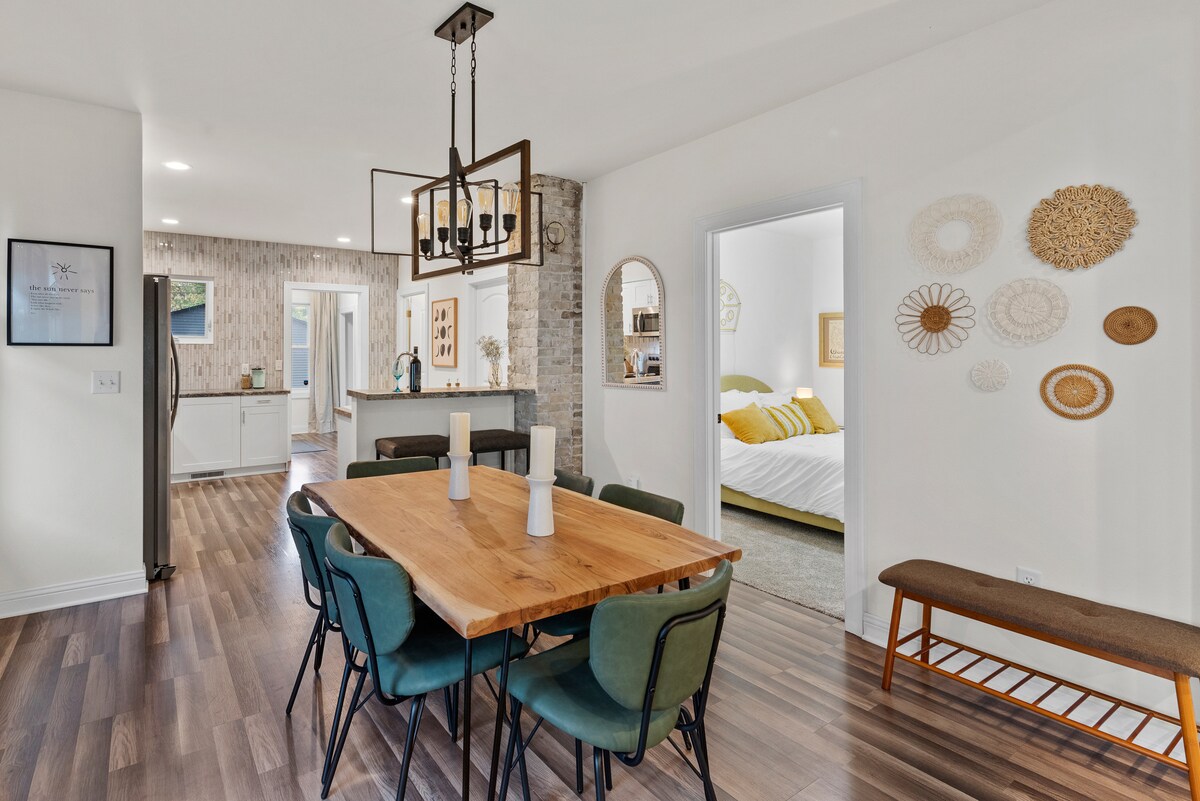 Celebrate your special occasion in Sheboygan at this beautiful boutique home. New patio and deck! Hot tub/Dry Sauna! Comfort and charm throughout. Cooks kitchen with all amenities. Primary bedroom w/King size bed. Secondary bedroom has 2 twin beds. The beautiful fireplace in the living room is perfect for a relaxing couples evening. Enjoy a glass of wine or local brew on the patio while you grill out. EV Charger and E-Bikes to explore the area. Let us impress you and help make it a memory.